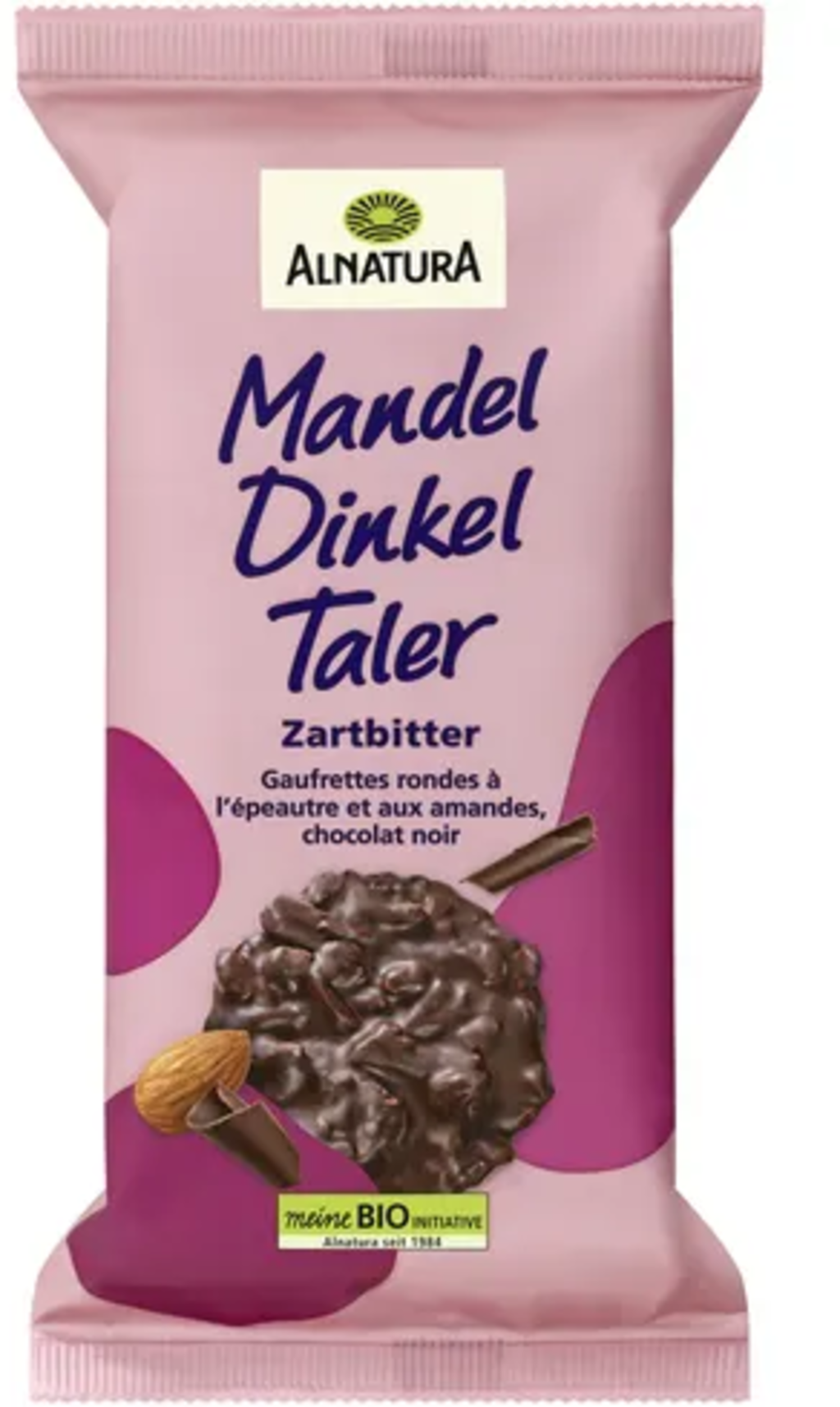 Alnatura Био бадемови вафли от спелта с тъмен шоколад, 100 г
