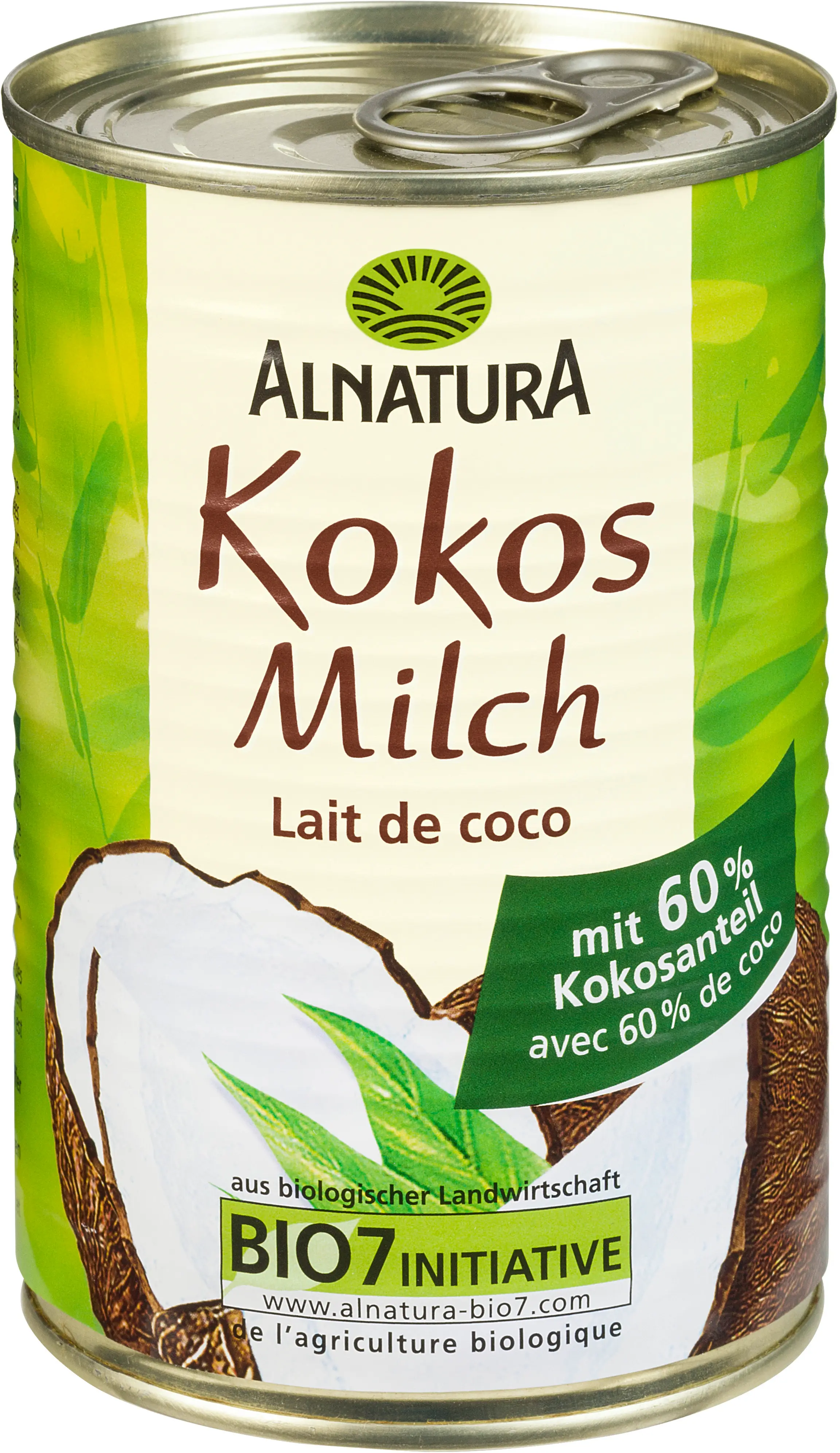 Кокосовото мляко от Alnatura придава на ястията деликатна и екзотична нотка. Високото съдържание на кокос от 60% гарантира особено интензивен вкус. Идеално за всякакви приготовления, кокосовото мляко може да се използва и за коктейли или кокосови десерти.