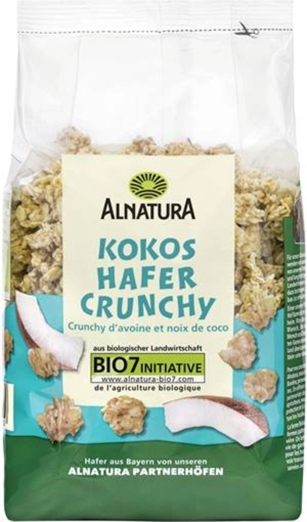 Този овесен крънч предлага екзотично изживяване за закуска. Обогатен с хрупкави кокосови чипсове и фини кокосови стърготини, ти дава усещане за ваканция още от сутринта. Подсладен е с цвеклова захар от Германия. Идеален с мляко, растителни напитки или кисело мляко. Kokos Hafer Crunchy е чудесен и за похапване между храненията.
