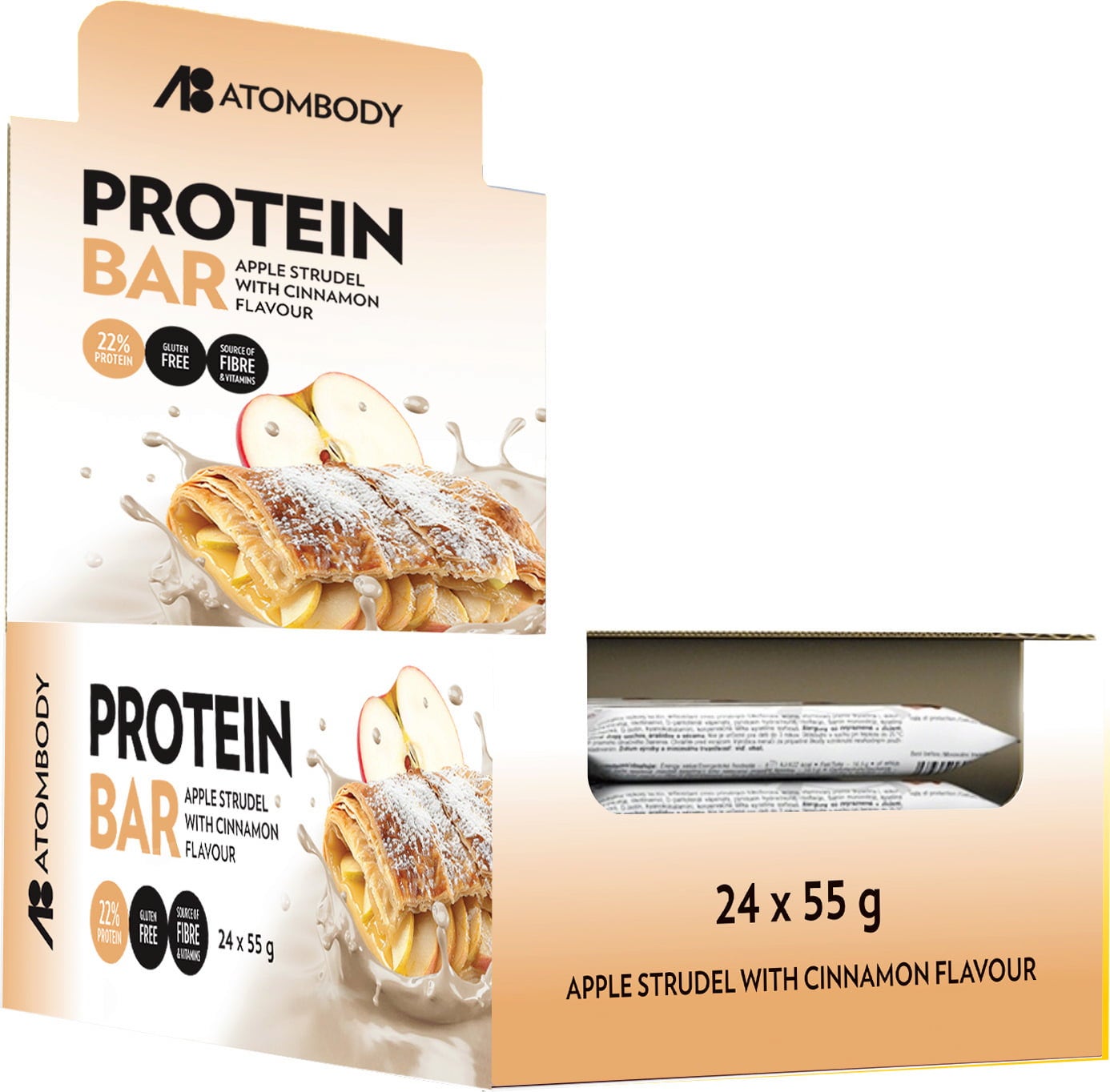 Този пакет съдържа 24 протеинови бара от Atombody - идеални спътници за ежедневието и спорта. Комбинацията от приблизително 12,6 г протеин в барче, високо съдържание на фибри и важни витамини от група В гарантира оптимално развитие и поддържане на мускулите. Предлагат се във вкусни аромати.