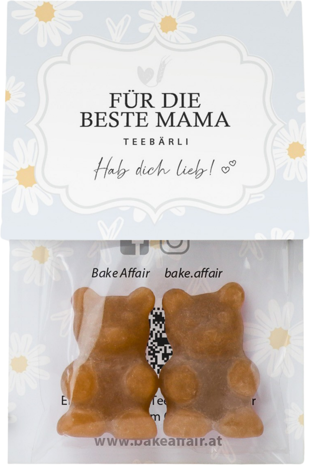 Teebärli „Für die beste Mama“ („За най-добрата мама“) от Bake Affair със сигурност ще донесат голяма радост на твоята майка. Опаковката носи надписа „Hab dich lieb“ („Обичам те“). Ароматният вкус на манго и червен портокал придава на чая особено плодов характер. Разбира се, Teebärli могат да се похапват и директно, според предпочитанията.