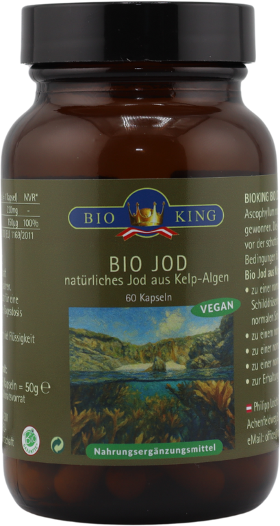 Органичният йод на BioKing се извлича от макроводораслите Ascophyllum nodosum, които растат във водите около Външните Хебриди на западното крайбрежие на Шотландия. Естествените водорасли се събират със сертифицирано биологично качество и се обработват внимателно.