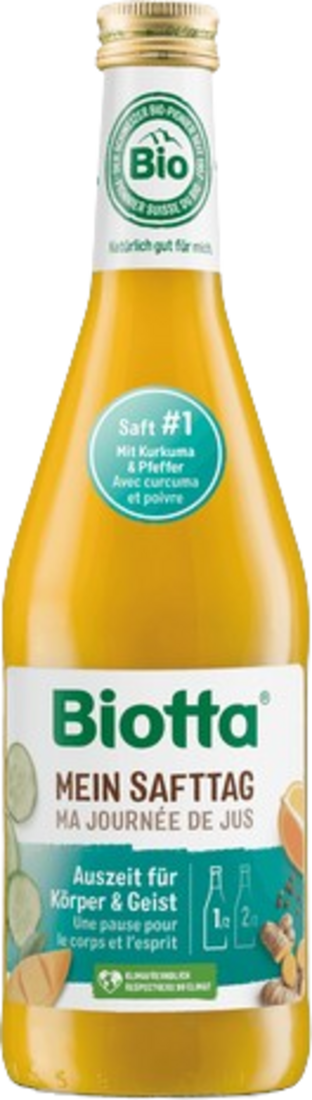 Постенето е лесно с този сок. Смес от ябълков сок, пюре от манго, портокалов сок, сок от жълт морков, куркума, черен пипер и много други съставки ви подкрепят в търсенето. Този сок е веган, благоприятен за климата и просто вкусен. Трябва да опитате.