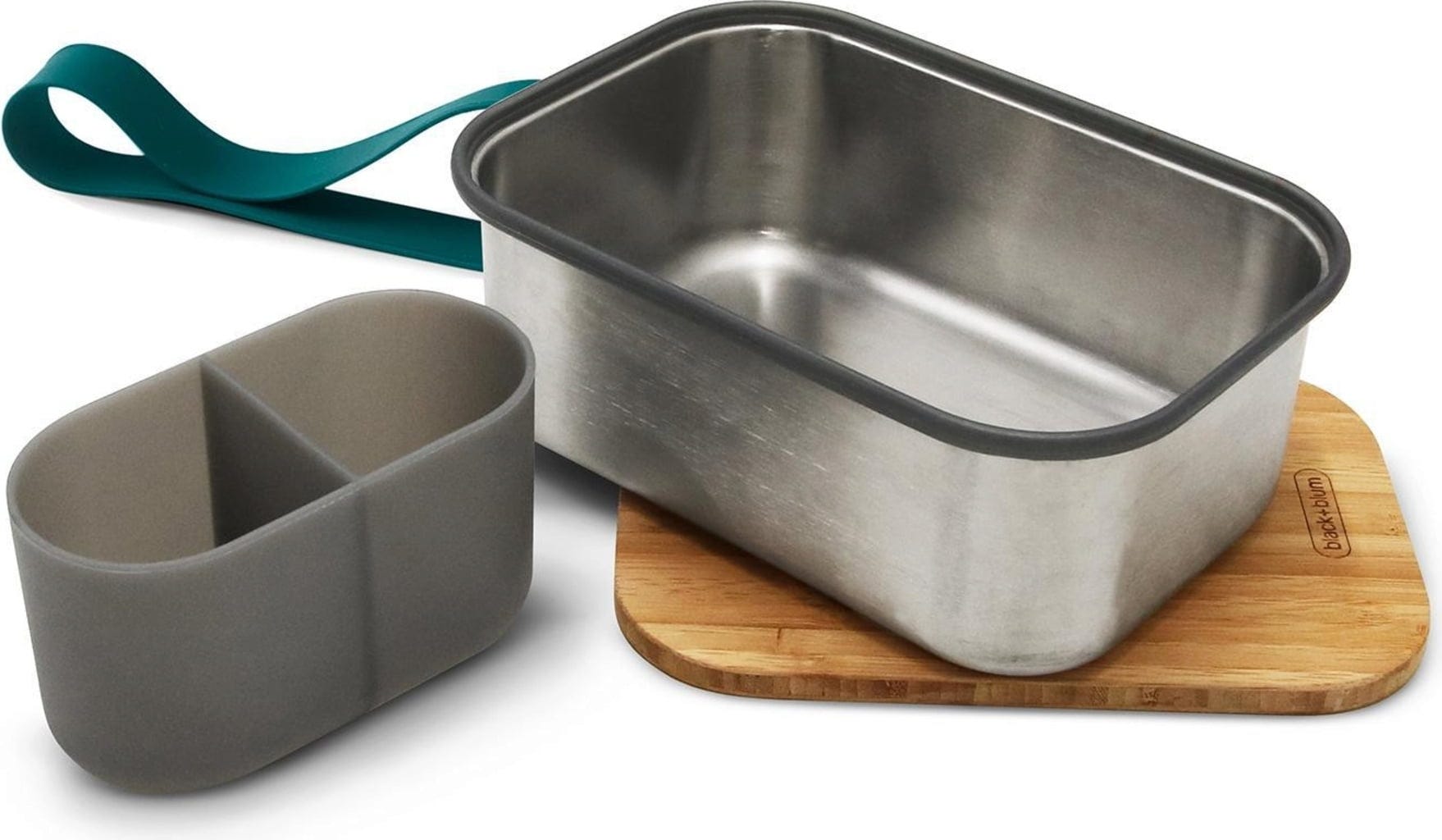 Изискана кутия за обяд от неръждаема стомана, идеална за съхранение на големи сандвичи. Практичното вътрешно силиконово отделение е чудесно за съхранение на плодове, салати или сушени плодове. Функционалният естествен бамбуков капак, който също е естествено антибактериален, служи като дъска за рязане.