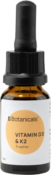 Капките Botanicals® Vitamin D3 & K2 съдържат мастноразтворимите витамини D3 и K2 в оптимална комбинация – идеални за вашето ежедневие. Течната лекарствена форма позволява индивидуално дозиране с 1-2 капки на ден. Без глутен, лактоза и животински съставки – за здравословно хранене в ежедневието.