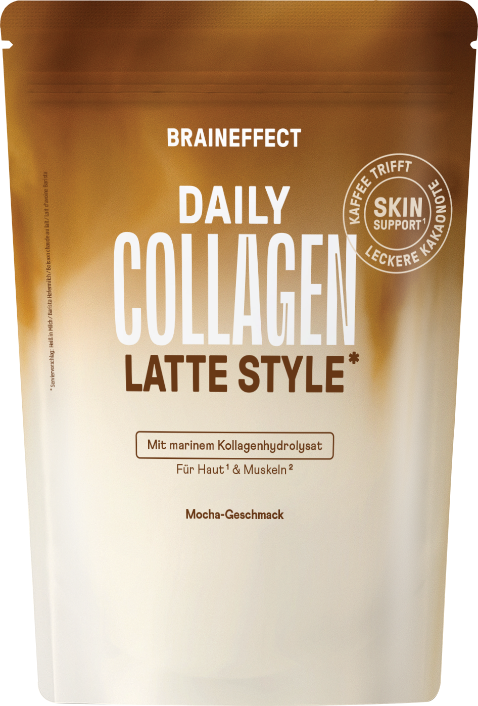 Daily Collagen Latte Style с 10 g висококачествен колагенов хидролизат е идеален спътник за началото на деня. Без неприятен остатъчен мирис и вкус. Кадифена комбинация от какао и кафе. Идеален избор за всички, които избягват продукти от говежди произход.