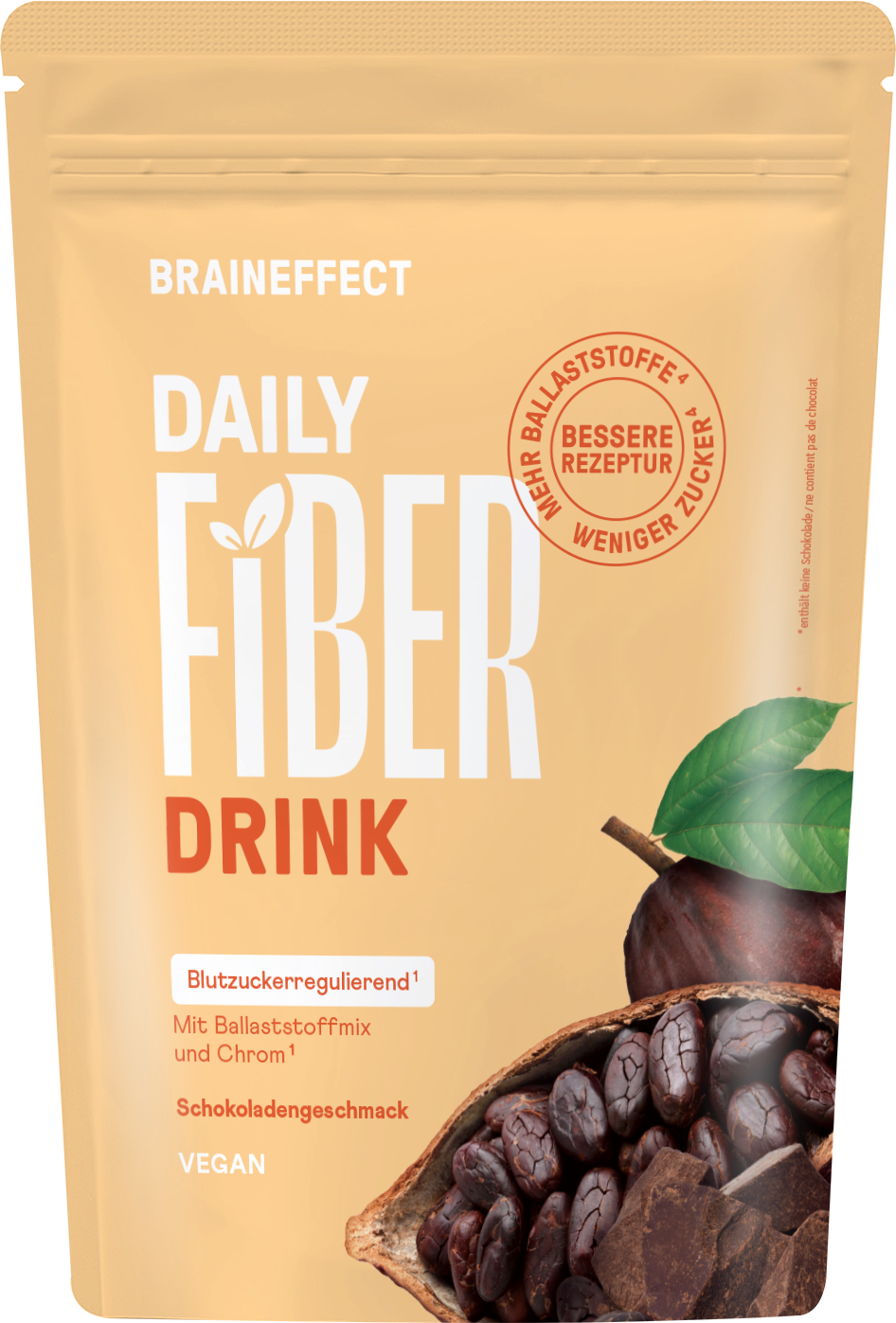 inavea™ (акациева гума)[1] (Баобаб плодове на прах, Акациеви влакна), 15 % fettarmes Kakaopulver, Устойчив декстрин, Псилиум на прах, овес (бета глюкани), natürliches Aroma, Verdickungsmittel (5 % глюкоманан от корен на конджак), ябълкови фибри, Glutenfreies Hafermehl, пектин, Vitamin C (екстракт от ацерола), Сол, Подсладител (Steviolglycoside aus Stevia), Niacin, Хром