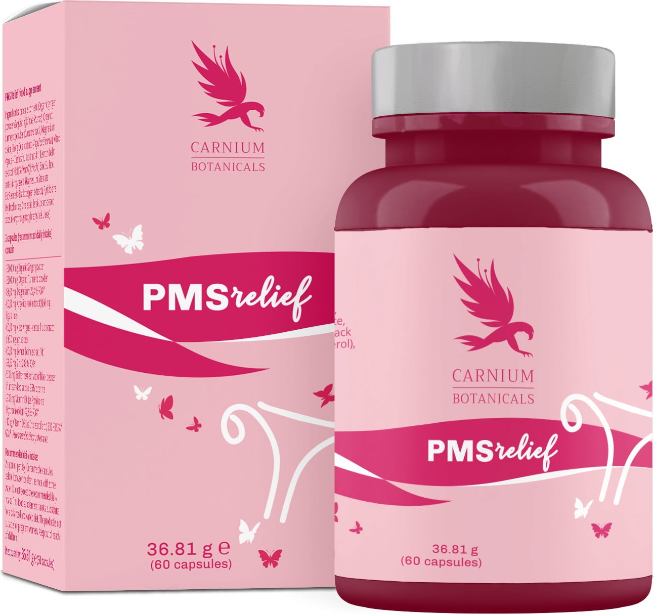 PMS Relief на Carnium Botanicals подпомага жените със съставки като магнезий, джинджифил, китайска ангелика, витекс, маточина, както и витамини B6 и D3. Формулата на капсулите е веган и без глутен и консерванти.