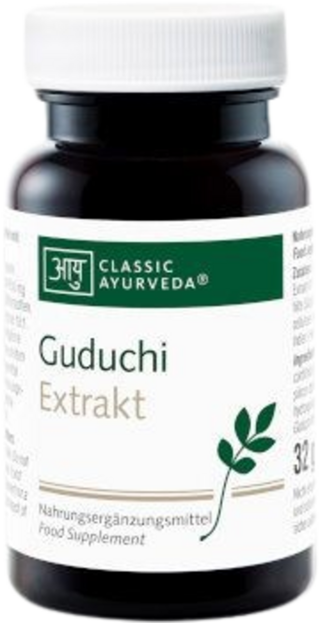 Този продукт от Classic Ayurveda съдържа екстракт от Гудучи (Tinospora cordifolia). Капсулите са предназначени да осигуряват 650 mg от растителния екстракт на дневна доза, което съответства на 17,6 mg горчиви вещества. Съотношението на екстракция 10:1 осигурява концентрирана форма на съставките във вегетарианска капсула, изработена от хидроксипропилметилцелулоза.
