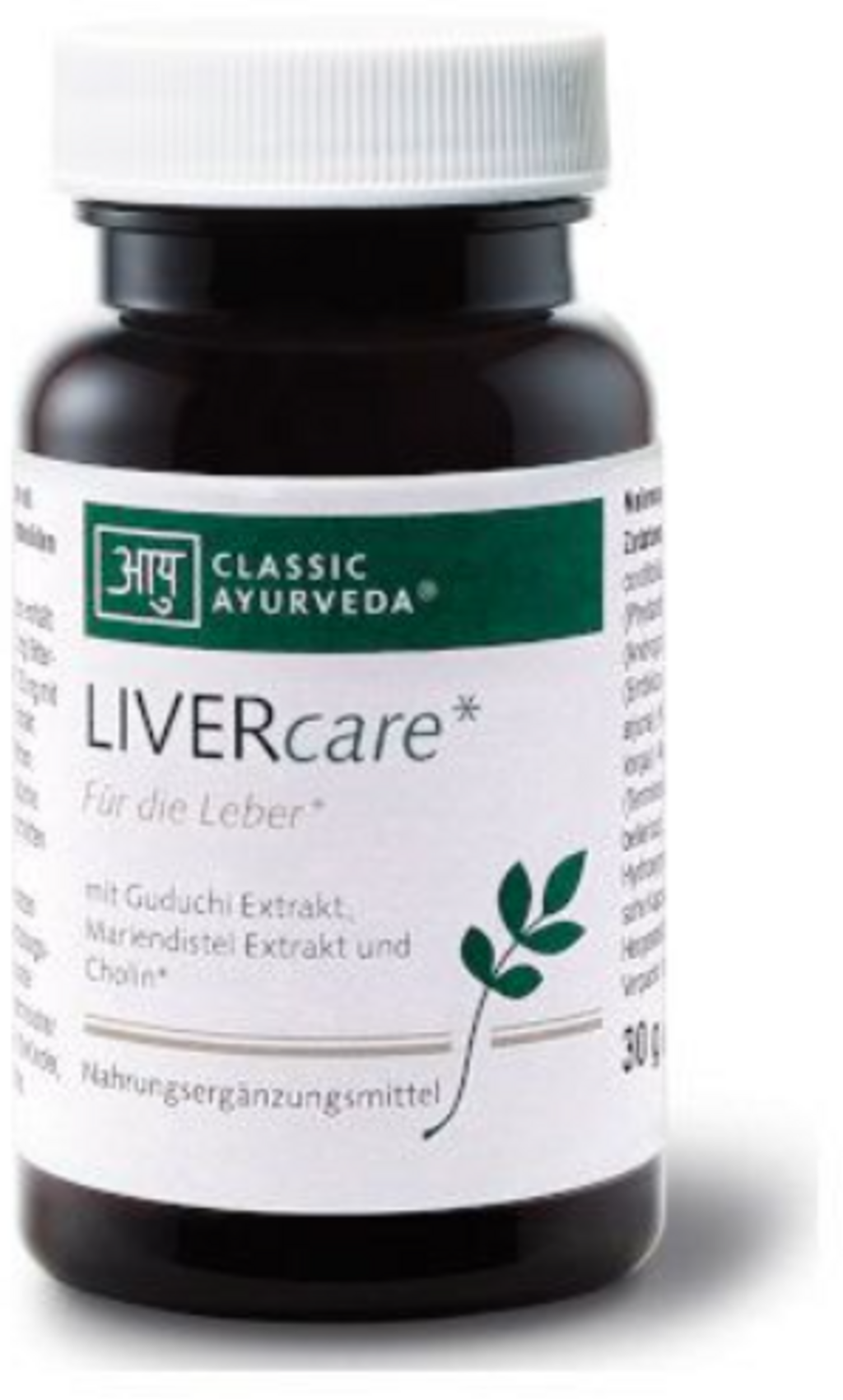 Капсулите LIVERcare от Classic Ayurveda съдържат комбинация от растителни екстракти и хранителното вещество холин. Рецептата се базира на гудучи, магарешки бодил и бхумямалаки, както и други аюрведични растителни вещества като амла, тулси и арджуна. Сместа се допълва от куркума и трикату подправките джинджифил, черен пипер и пипали.