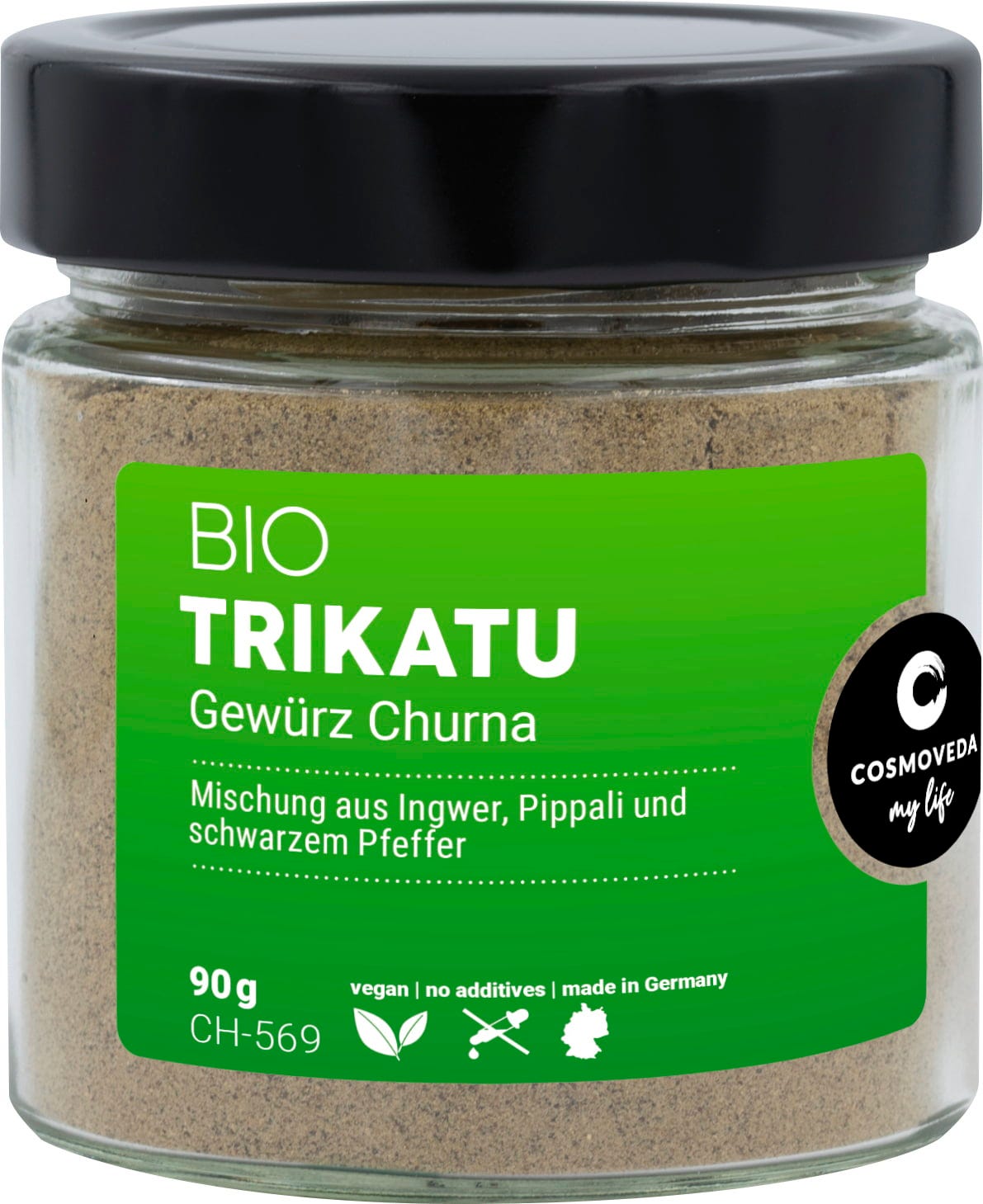 Био трикату чурна съдържа микс от черен и дълъг пипер (Piper nigrum и Piper longum), както и джинджифил (Zingiber officinale). Те са фино смлени и се смесват при температури под 40 °C според традиционните методи.
