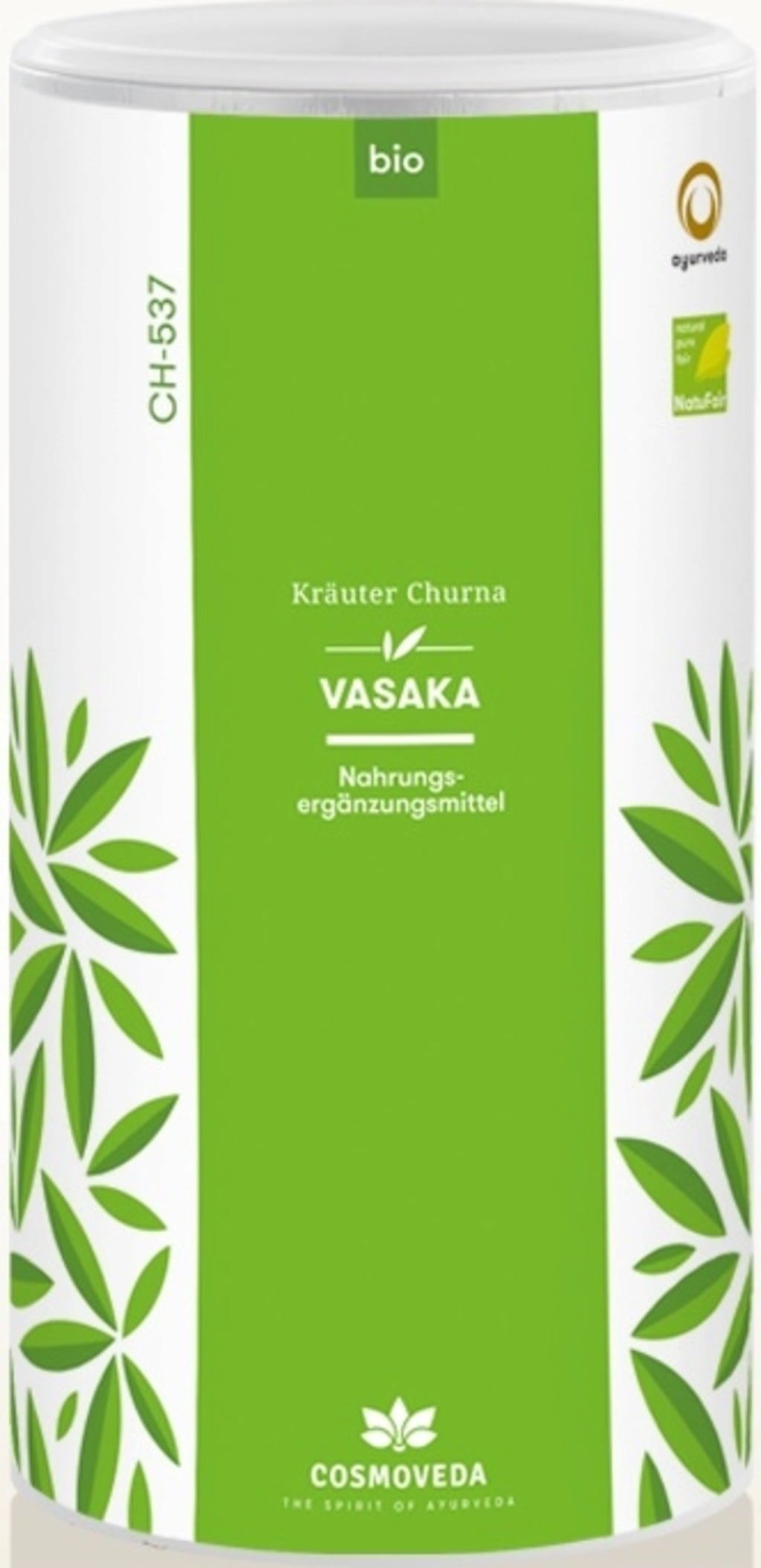 Васака - Adhatoda vasica - е вечнозелено дърво, чиито листа, цветя, корени и плодове се използват в аюрведичната диета. Нежната обработка (под 40 °C), използвана за производството, идва от индийската и Шри-Ланканската справедлива търговия.
