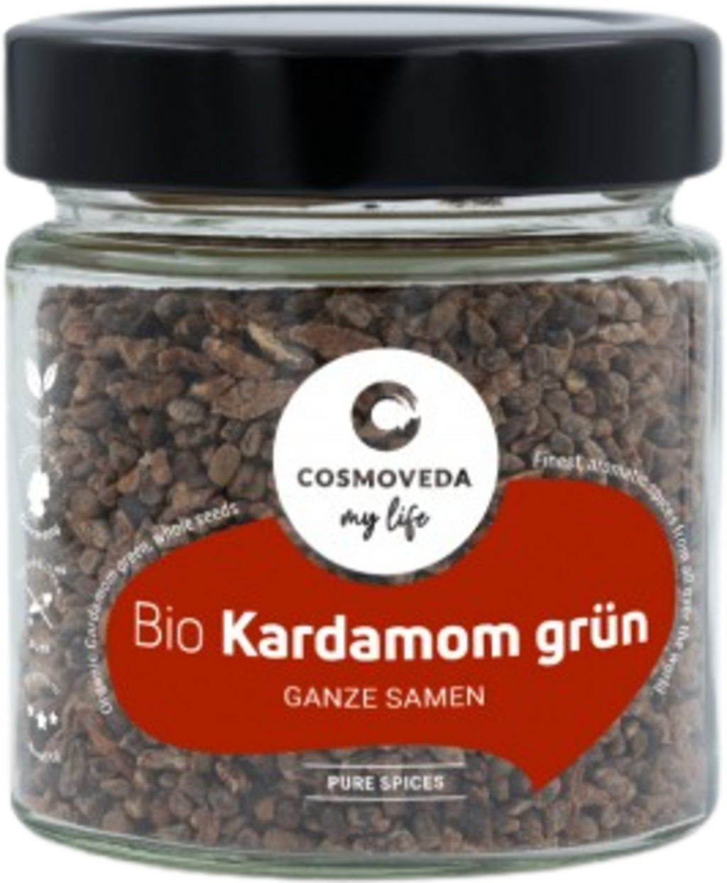 Черните семена, съдържащи се в зеления кардамон, са прясно смлени и включени в десерти, изящни напитки, мляко и кафе. Кардамонът е една от най-старите и най-ценни подправки в света, наред с шафрана и ванилията. Подправката произхожда от Южна Индия и днес може да бъде намерена в Шри Ланка, Гватемала, Танзания и Бразилия.