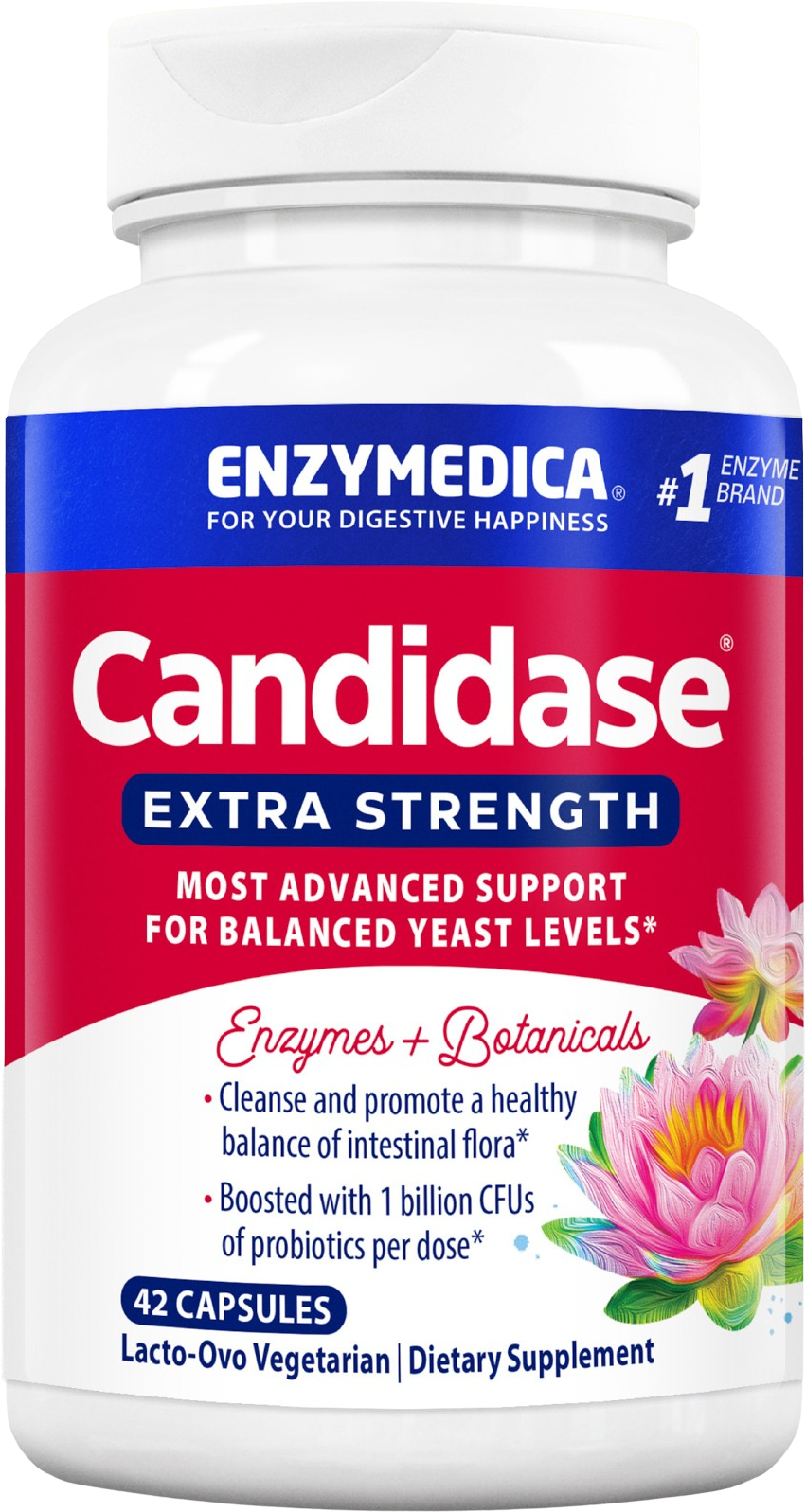 Enzymedica Candidase® Extra Strength е усъвършенствана формула, специално разработена за 14-дневна употреба. Формулата съчетава ензимите целулаза и протеаза от Thera-blend, които са предназначени да разграждат специфични клетъчни структури. Този комплекс се допълва от пробиотика Bacillus subtilis и селекция от етерични масла от риган, мащерка и карамфил, които се ценят заради естествените си свойства. Благодарение на специалната технология на капсулите е възможно целенасочено освобождаване на съставките в червата, без стомашната киселина да нарушава активността им. Този вегетариански продукт не съдържа мляко, глутен или соя и предлага вариант на чисто растителна основа.
