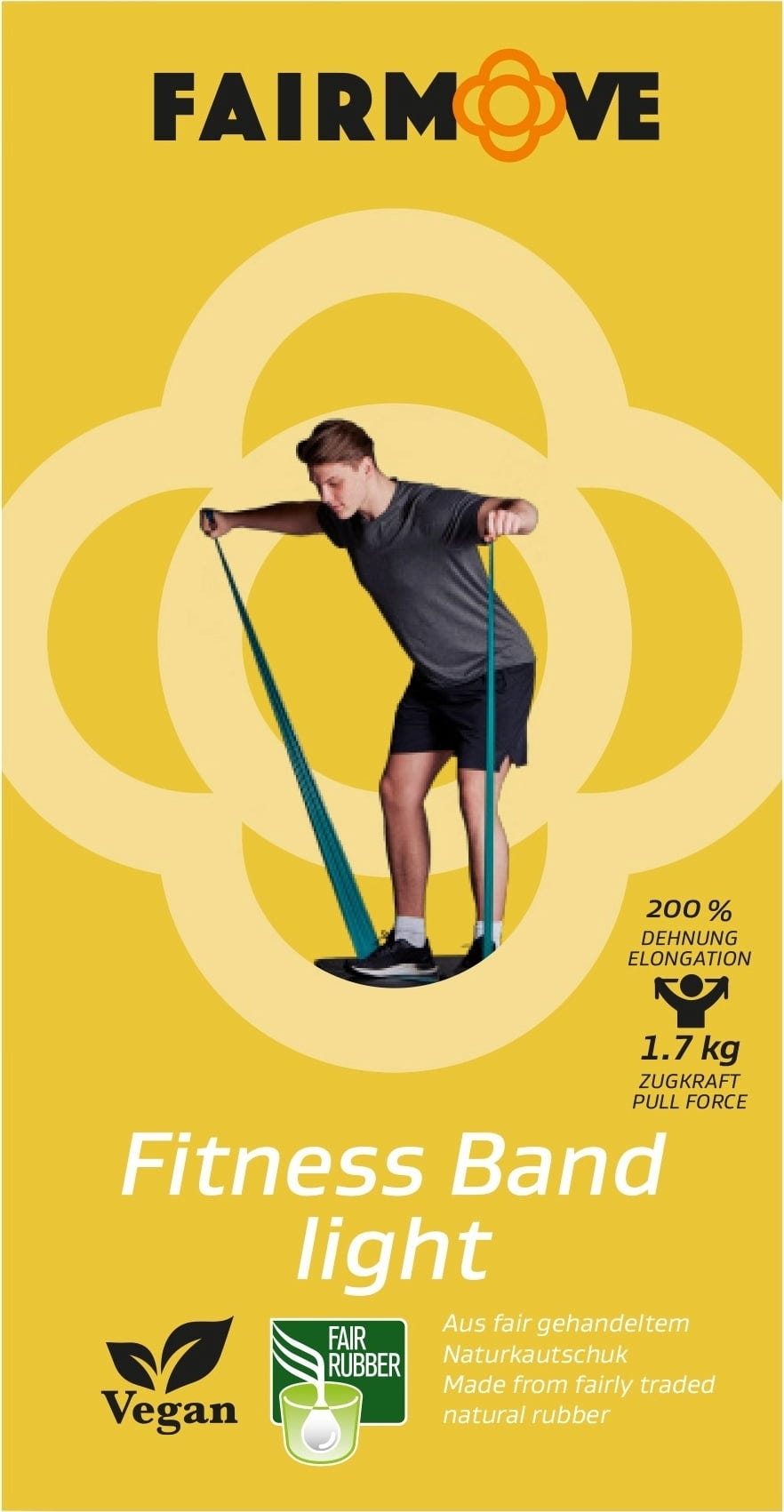 Тази фитнес лента FAIR MOVE е универсален инструмент за разтягане на цялото тяло, целенасочено развиване на силата и подобряване на баланса, идеален за йога, пилатес или всяка друга фитнес програма, която обичате. Убедете се във високото качество и устойчивостта на скъсване на здравия материал. Той е напълно без пластмаси и пластификатори и е изработен от 100 % справедливо търгуван естествен каучук от Шри Ланка. Можете да тренирате спокойно, защото ластикът е напълно веган и след дълъг период на употреба се разгражда, без да оставя следи.