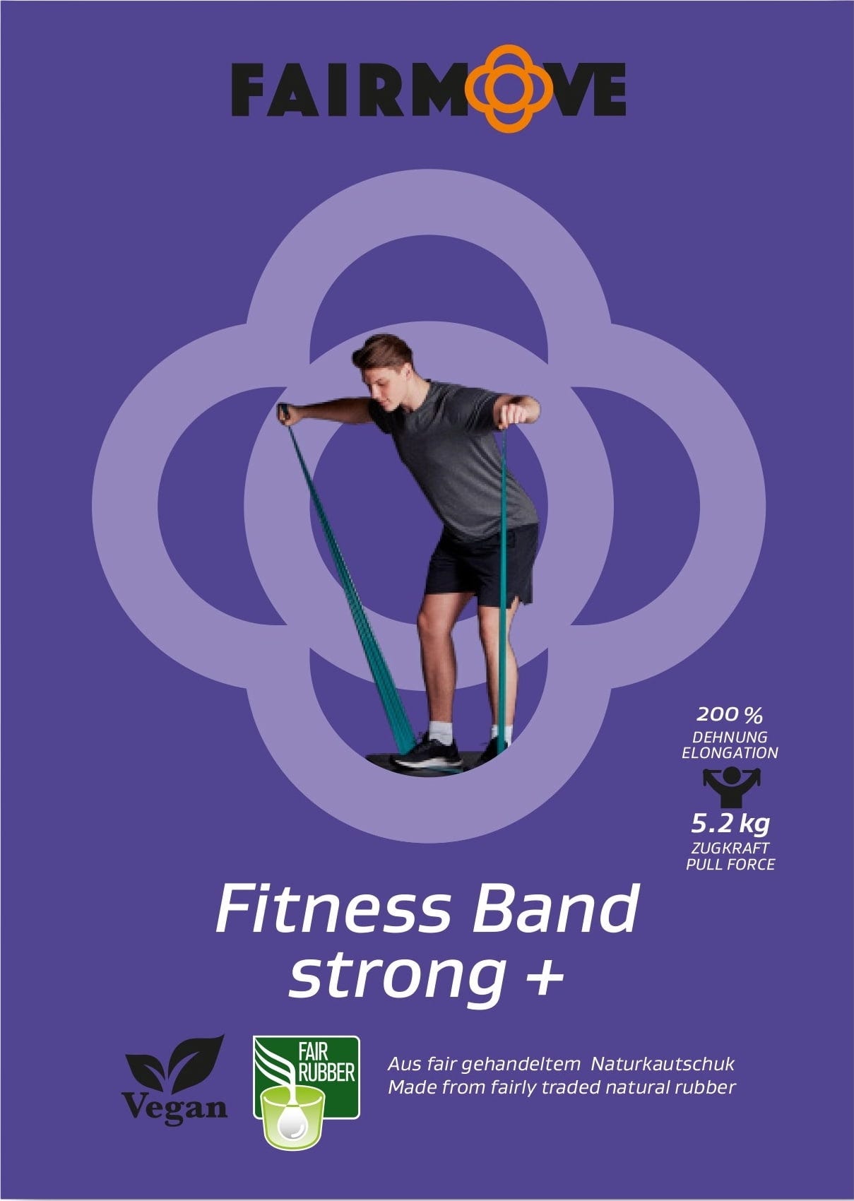 Вече не сте начинаещи и търсите високо съпротивление, за да предизвикате мускулите си? Фитнес лентата FAIR MOVE Strong Plus ви дава силата, от която се нуждаете за следващия квантов скок в тренировките ви. Със сила на сцепление от 5,2 кг той подпомага интензивния напредък в йога, пилатес и силовите тренировки. Предназначен е за амбициозни спортисти, които искат да достигнат границите на възможностите си. Размерите от 200 x 12 cm гарантират широка свобода на движенията и същевременно устойчив избор, защото лентата е изработена от 100 % естествен каучук от справедлива търговия от Шри Ланка, напълно веганска, устойчива на разкъсване и без пластмаси и пластификатори.