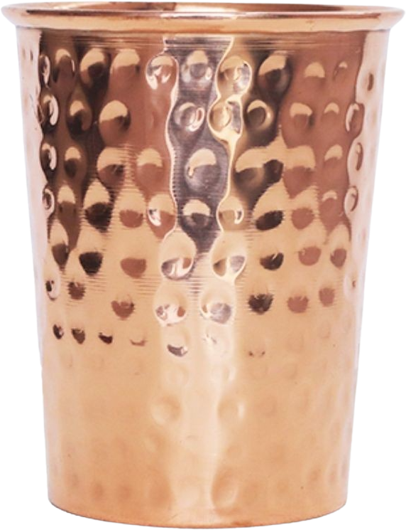 Чашите са ръчно изработени от чиста мед. Покрита отвън с безопасен лак и оставена естествена отвътре, чашата осигурява естествено алкална вода.