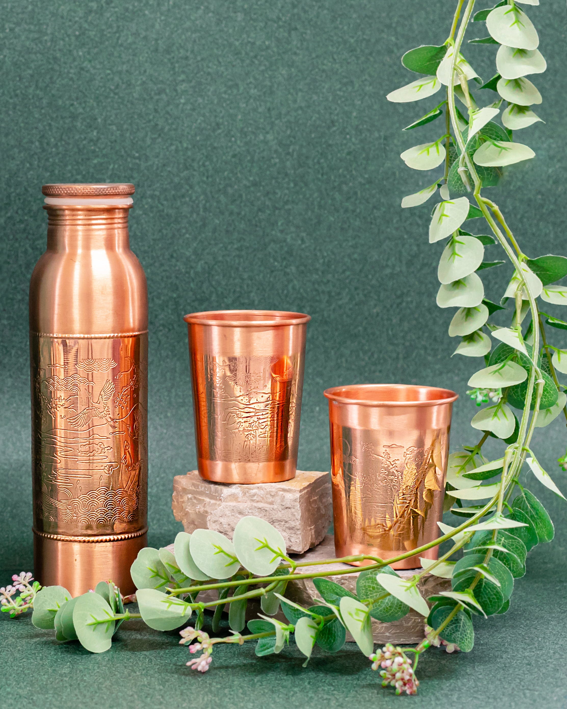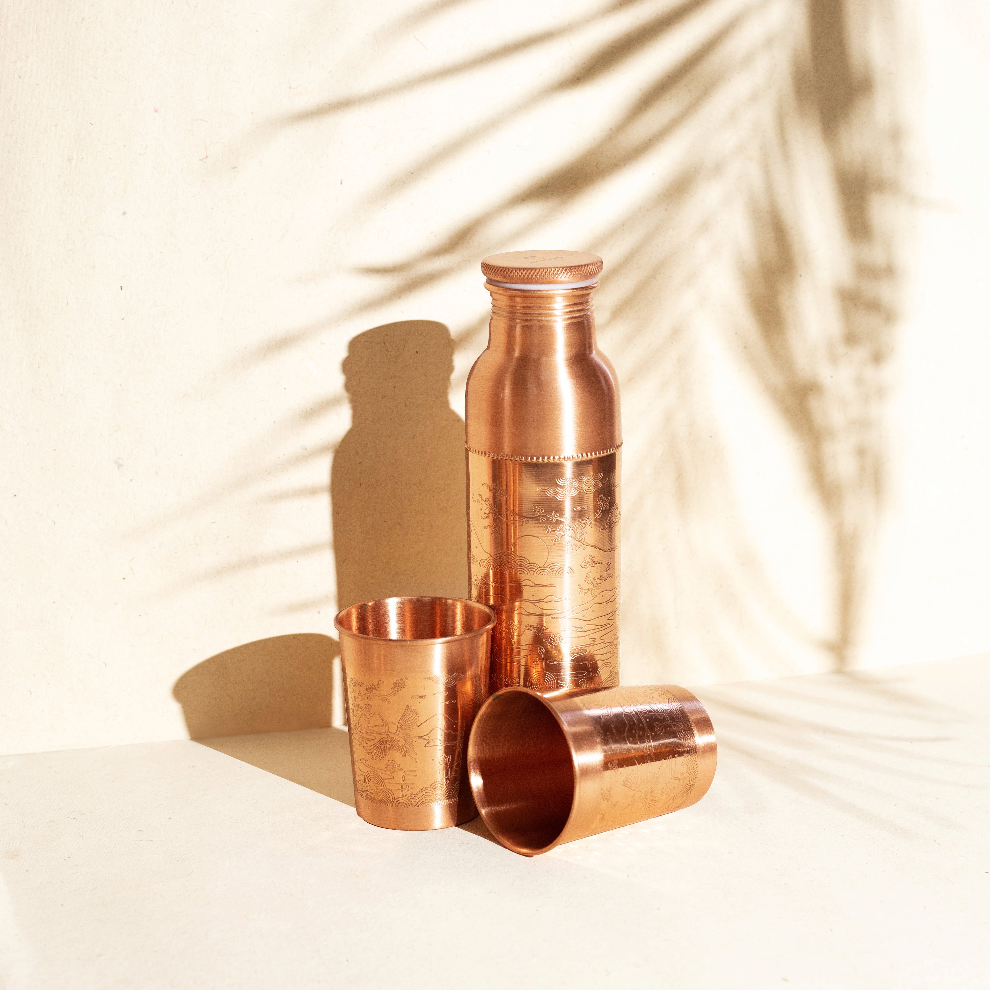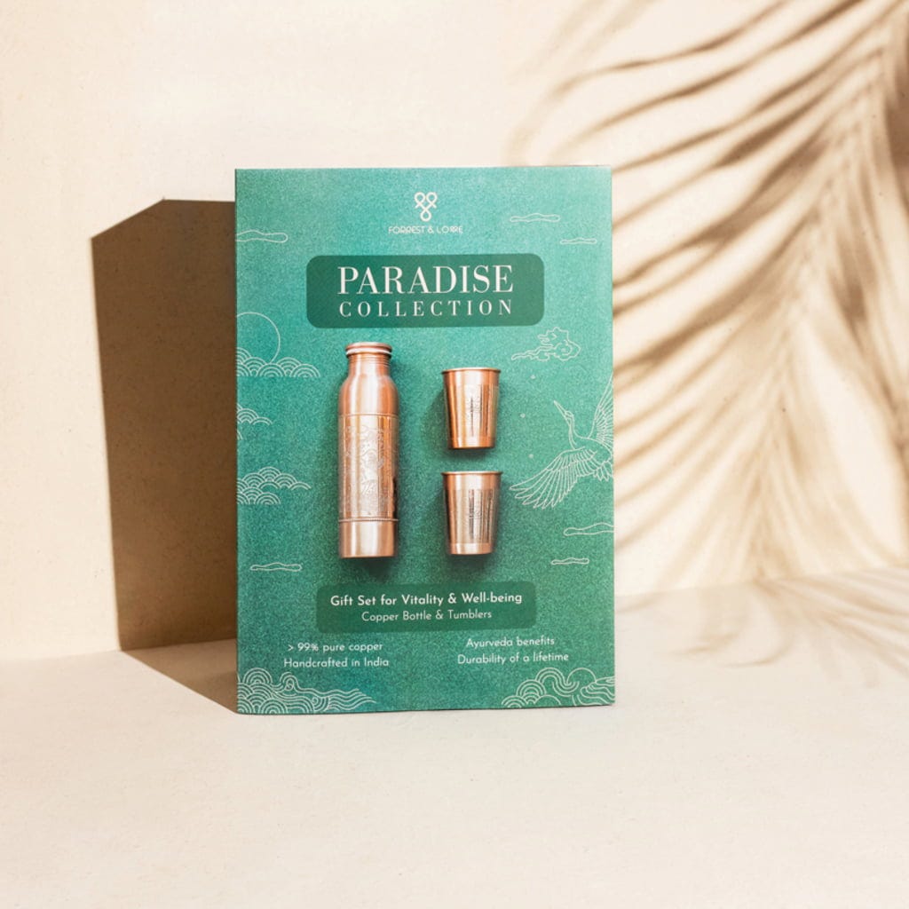 Дизайнът на рая е вдъхновен от японско произведение на изкуството и убеждава с крехката си красота на фино гравирани цветя и птици. Благородният и издръжлив подаръчен комплект съчетава идиличен дизайн със специално преживяване от пиенето на вода.
