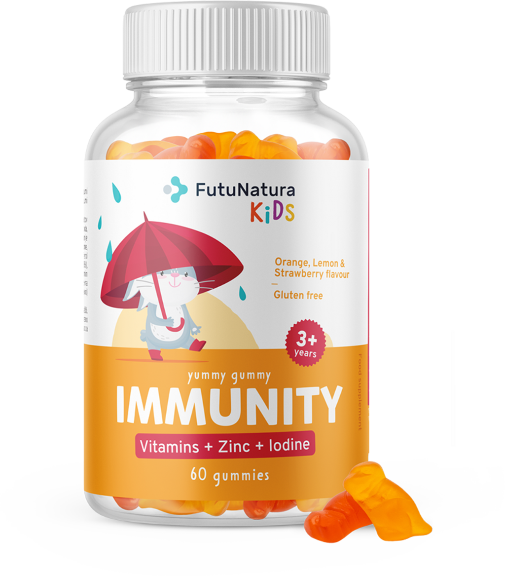 IMMNUNITY Gummis са вкусна и лесна алтернатива на капсули и таблетки, тъй като детето може да ги дъвче като обикновено лакомство. За разнообразие в вкуса има различни варианти: портокал, лимон и ягода. Без глутен и без генно модифицирани организми.