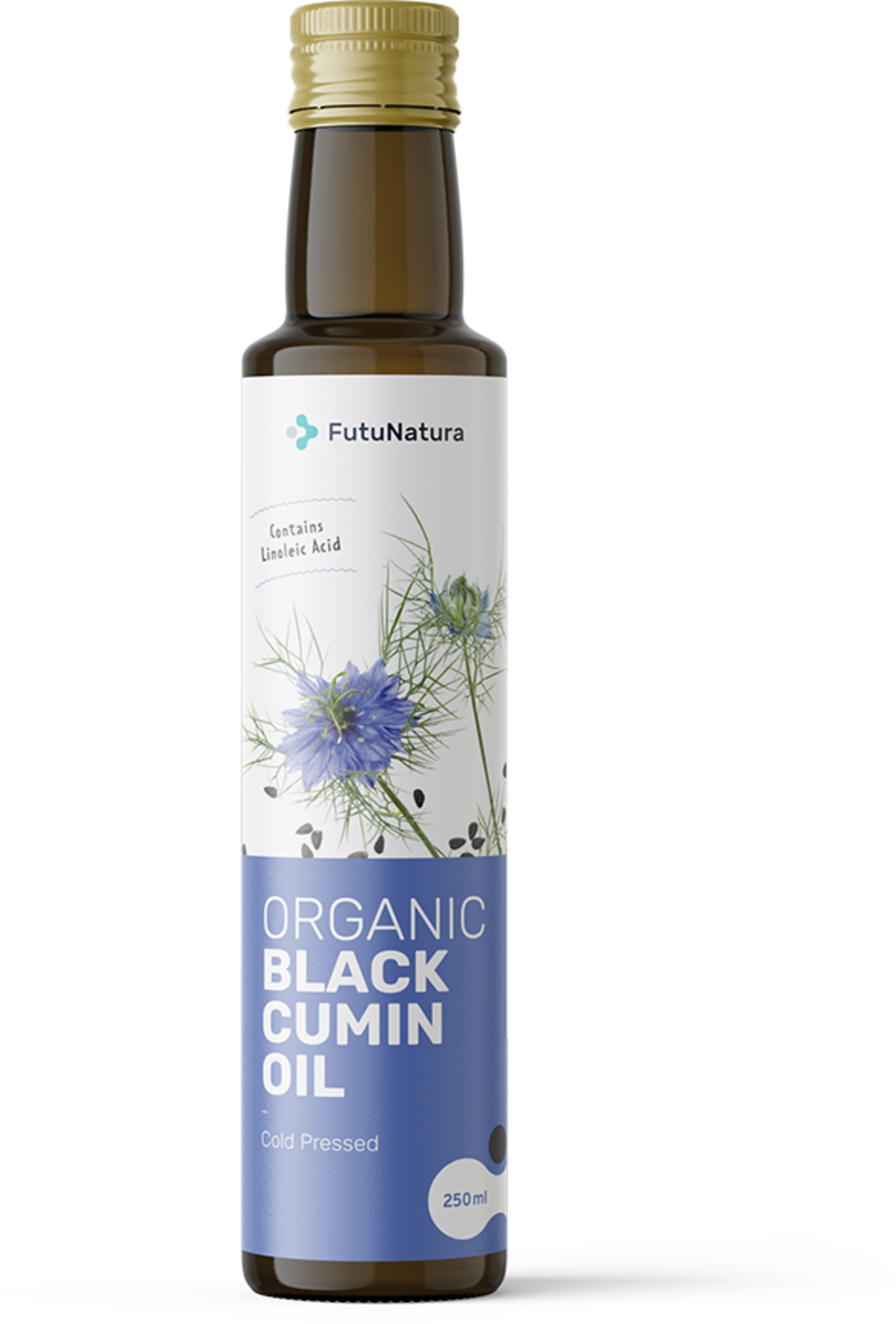 Открийте органичното масло от черен кимион Futunatura, извлечено от семената на истински черен кимион (Nigella sativa). Това висококачествено масло произхожда от сертифицирано биологично земеделие в Египет и се получава чрез нежно студено пресоване, за да се запазят оптимално естествените му свойства.