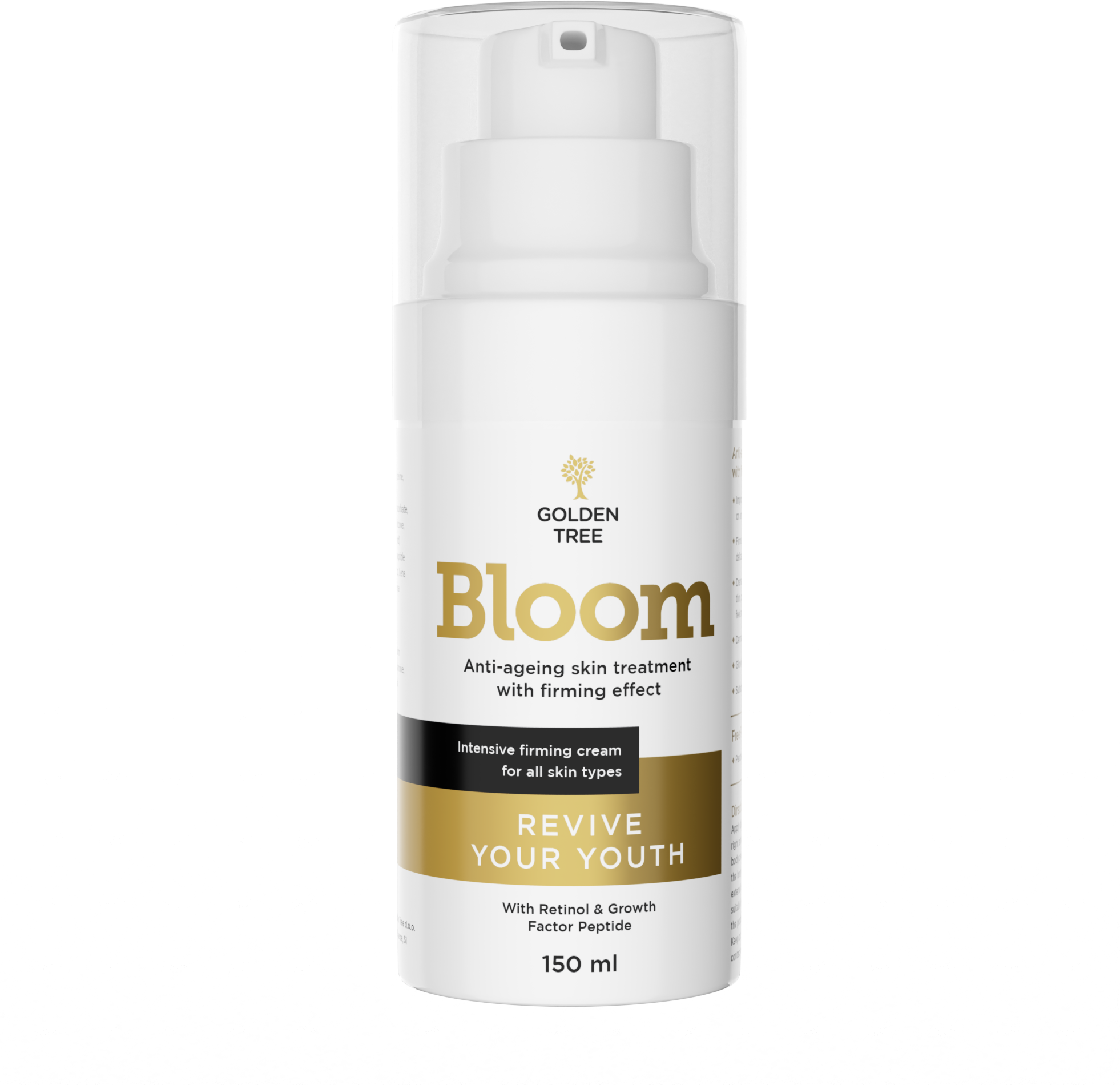 Bloom от Golden Tree съживява сухата, крепираща кожа. Този богат крем за тяло е подходящ за всички типове кожа и е обогатен с ниацинамид, натриев хиалуронат, алое вера и витамини А и С. Само с едно нанасяне дневно, кожата ви бързо ще стане забележимо по-мека и стегната. Благодарение на дълготрайния си ефект, една опаковка е достатъчна за 30 до 60 дни при редовна употреба.