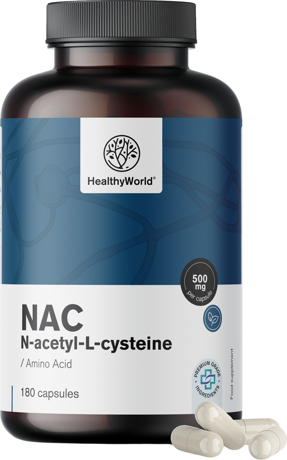 NAC 500 mg от HealthyWorld съдържа аминокиселината N-ацетилцистеин. Капсулите са изцяло от растителни съставки и позволяват лесно дозиране. Благодарение на капсулната форма те се приемат и лесно.