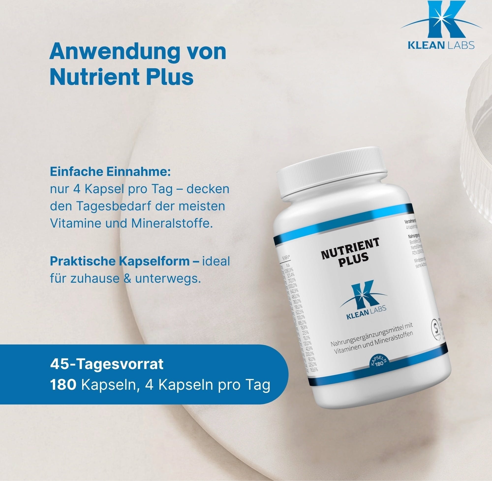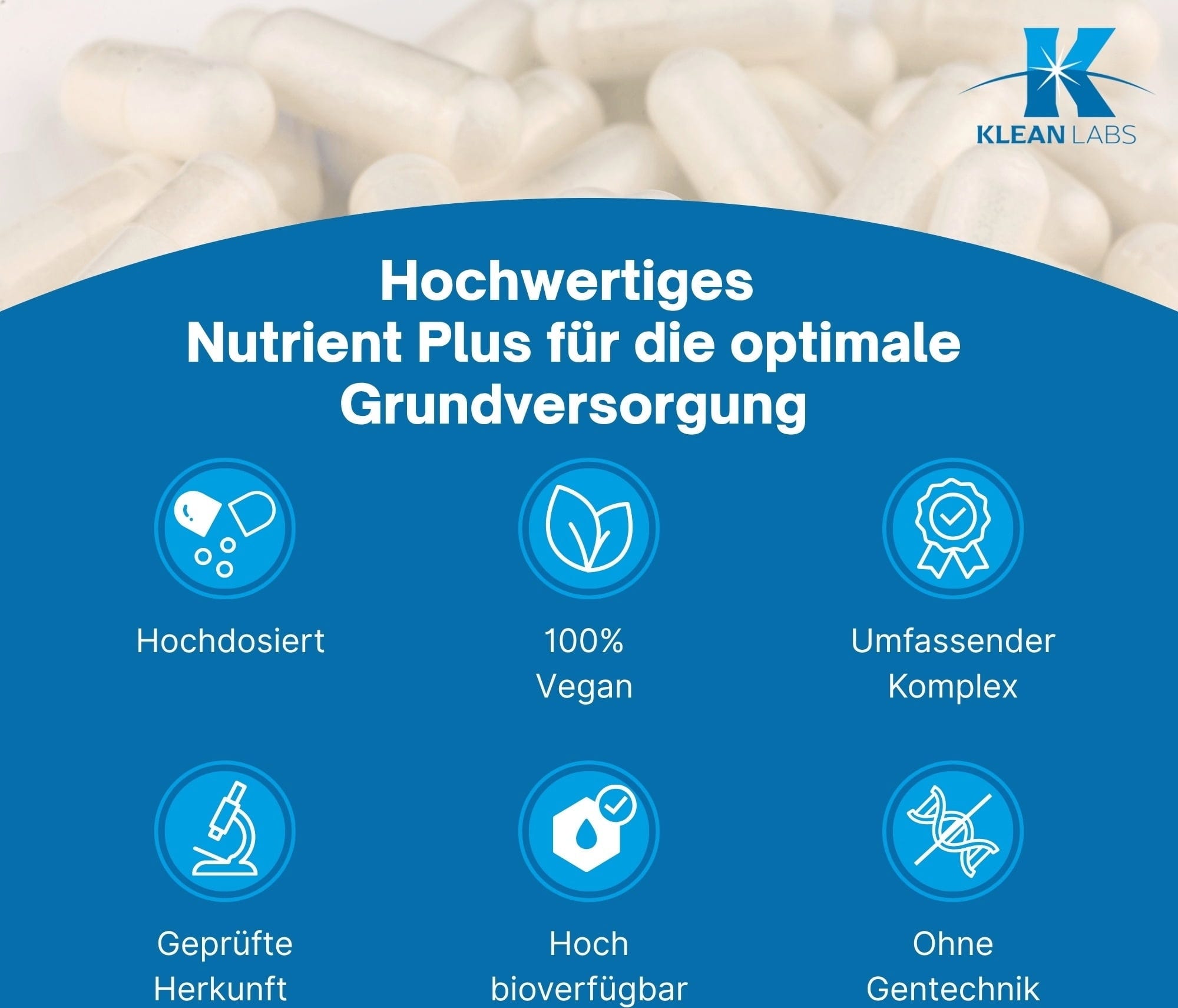 Капсулите Nutrient Plus съчетават комбинация от подбрани хранителни вещества. Вегетарианските основни витамини, минерали и микроелементи са произведени без помощни вещества.