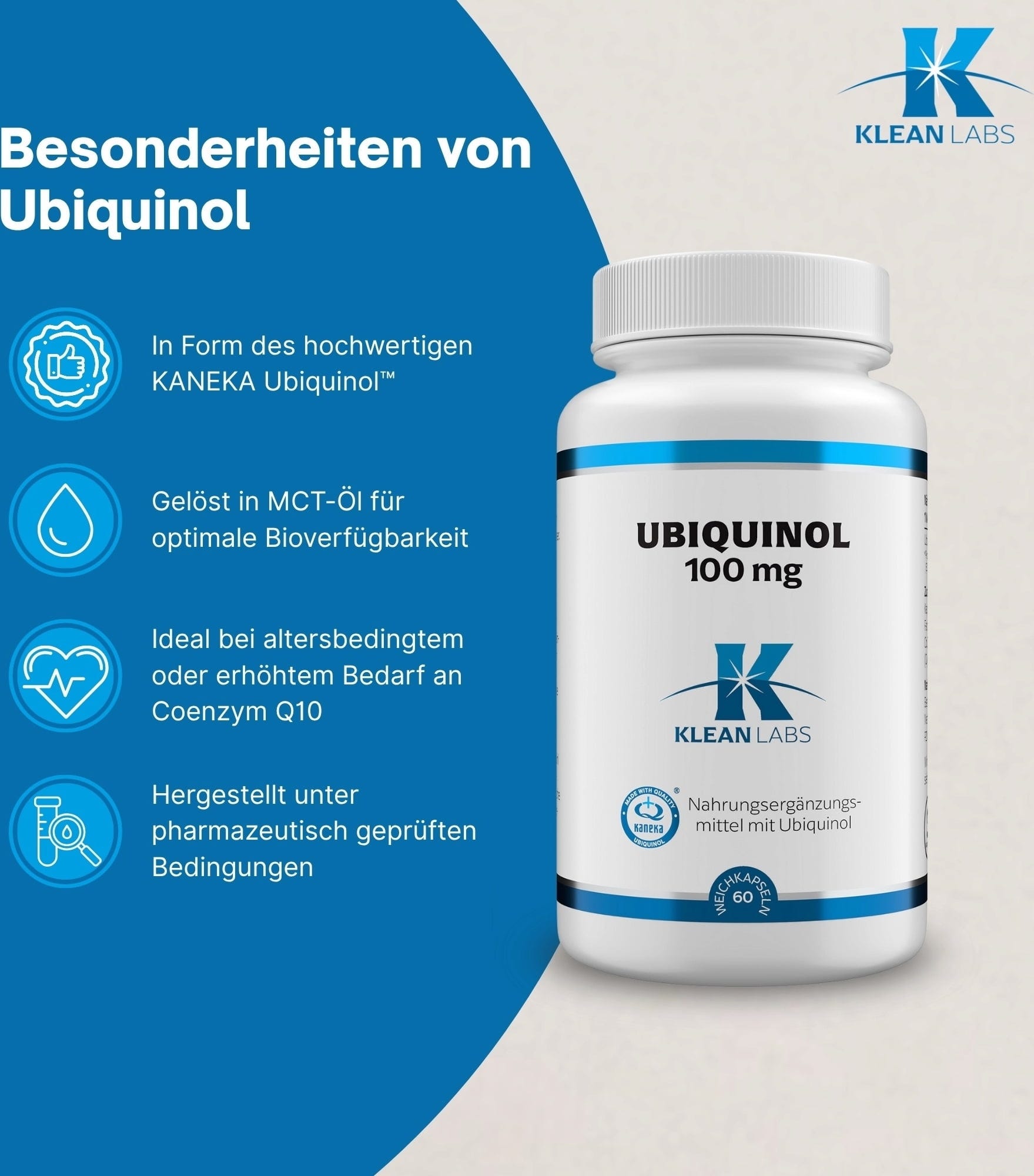 KLEAN LABS Убихинол 100 мг, 60 гел-капсули