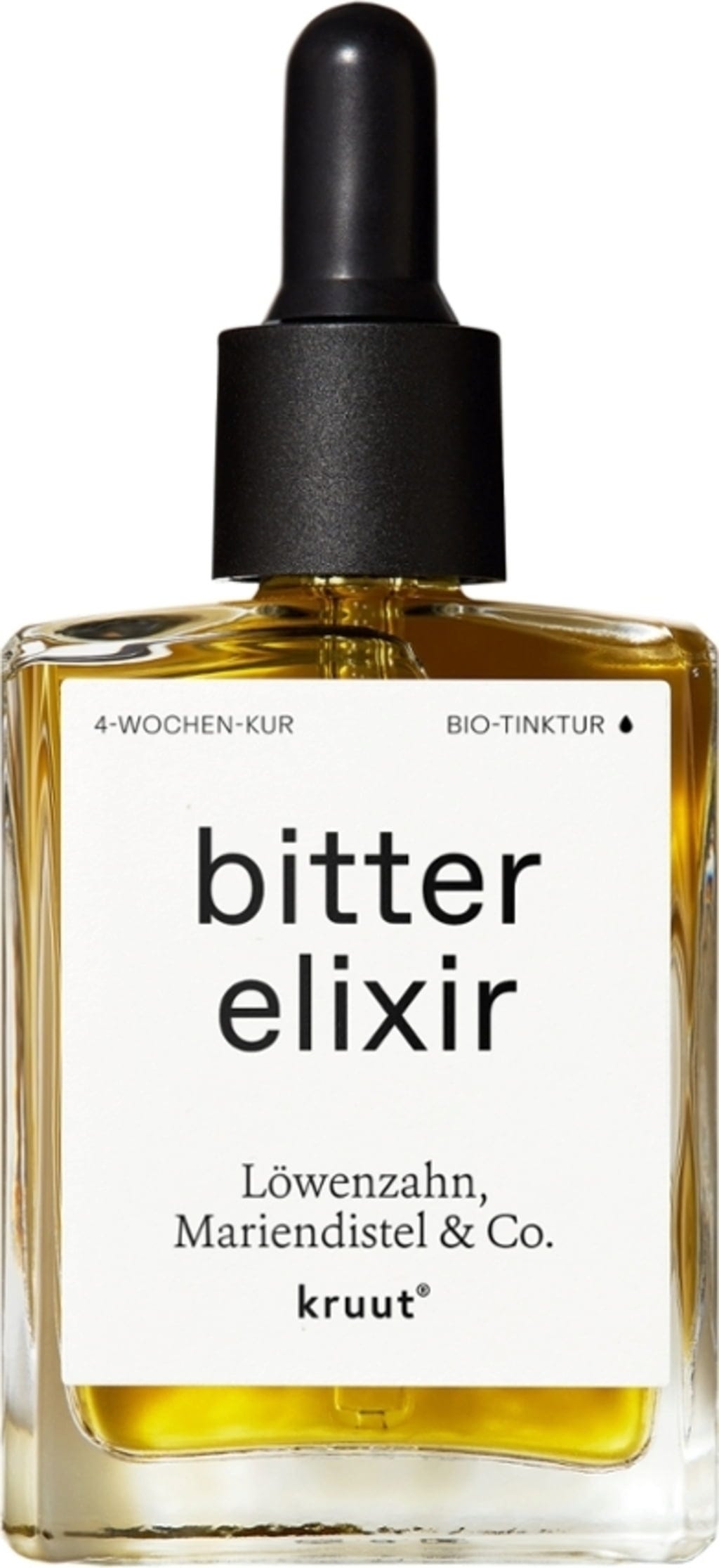kruut Bitter Elixir е висококонцентрирана тинктура, произведена в био ферма в Алпите. Формулата съчетава бял равнец, бял трън, глухарче, тинтява и лечебна ружа. Растенията се мацерират в алкохол непосредствено след беритбата, за да се запази целият спектър от съставки без нагряване.
