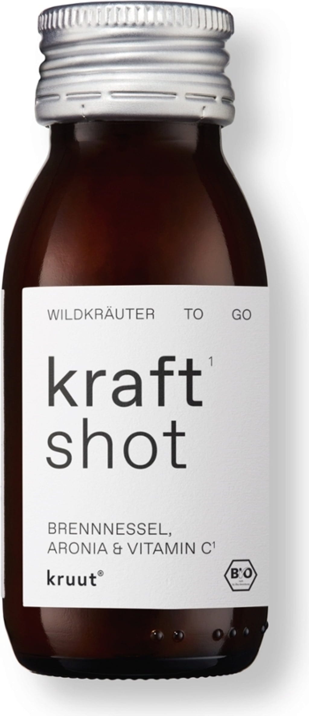 kruut Kraft Shot комбинира древна рецепта от натурално мътен Demeter ябълков оцет и суров цветен мед с местни диви плодове и подбрани билки. Формулата съдържа арония, както и екстракти от коприва, глухарче, червена детелина и лазаркиня.