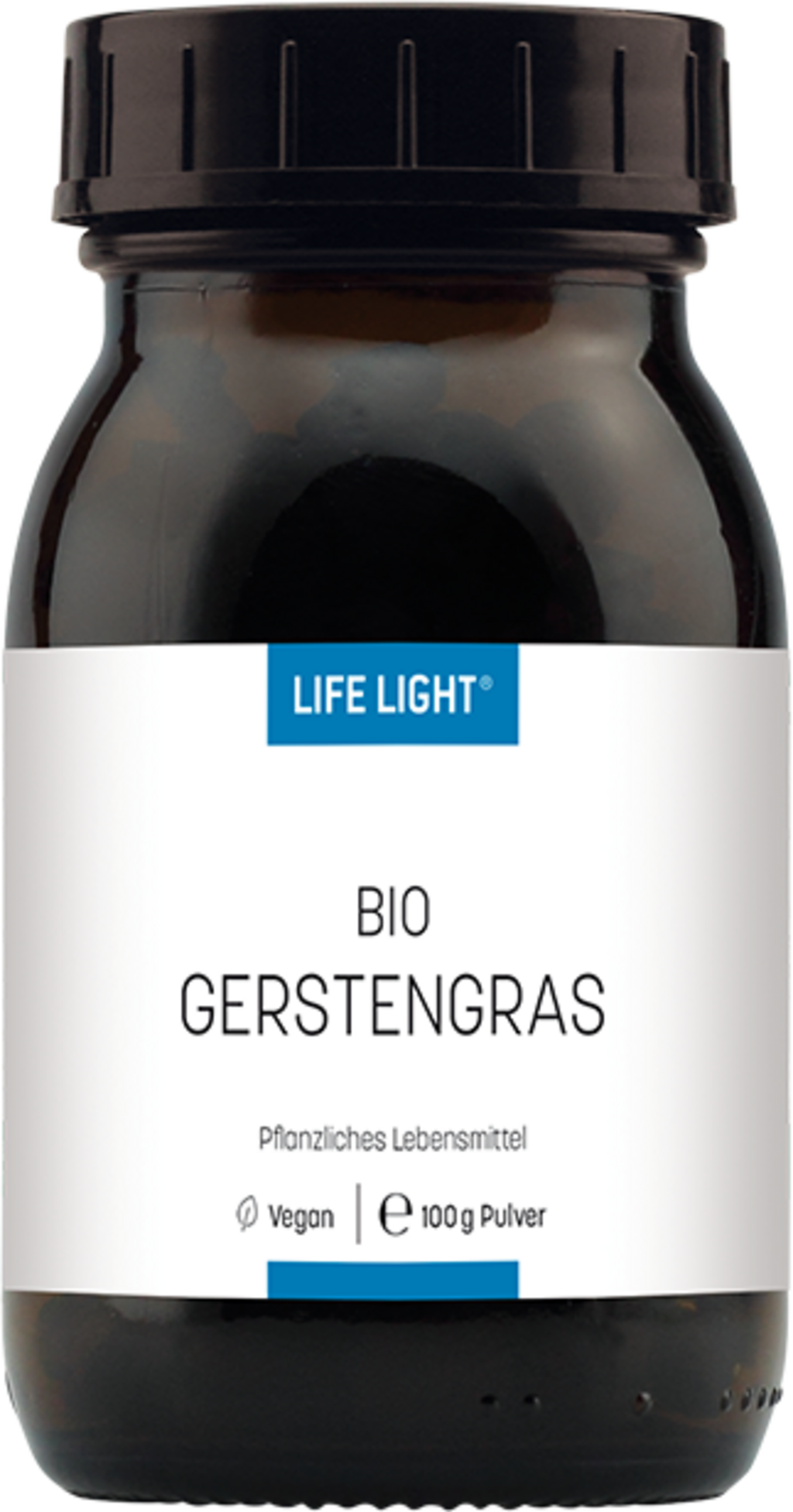 Висококачествена ечемичена трева на прах (Hordeum vulgare) с естествен хлорофил от контролирани био-сертифицирани немски ферми. Тревата се прибира през пролетта по време на най-високо съдържание на хранителни вещества. Подходящо за веганска диета.