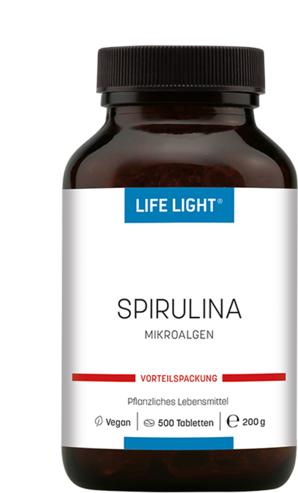 Таблетките спирулина от Life Light® съдържат висококачествени сладководни микроводорасли (Spirulina platensis). Те са богати на естествен хлорофил и са подходящи за употреба при вегетарианска и веганска диета.