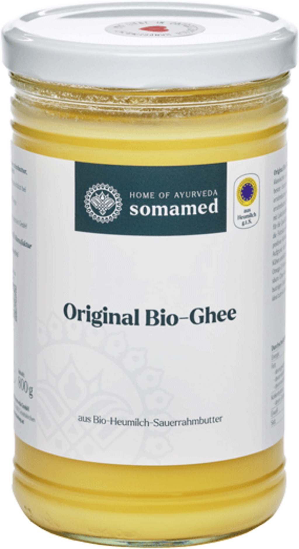 Оригиналното гхи е ръчно изработено в Горна Австрия от безупречна австрийска заквасена сметана с био качество. Цялото начинание е много сложно и отнема много време. Това гарантира дълъг срок на годност и също така допринася за изключително високото качество на продукта. Витамините, A, D, E и K се запазват и вкусът се засилва с всяка секунда. Златно-жълтият цвят също е показател за безупречното качество. Гхи има особено дълга традиция в Аюрведа и все още се използва навсякъде. Независимо дали в кухнята, по време на лечение с Расаяна или като съставка за лечебни цели, гхи винаги е сред основните избори. Продуктът е особено популярен в кухнята поради изключително високата си температура на възпламеняване.