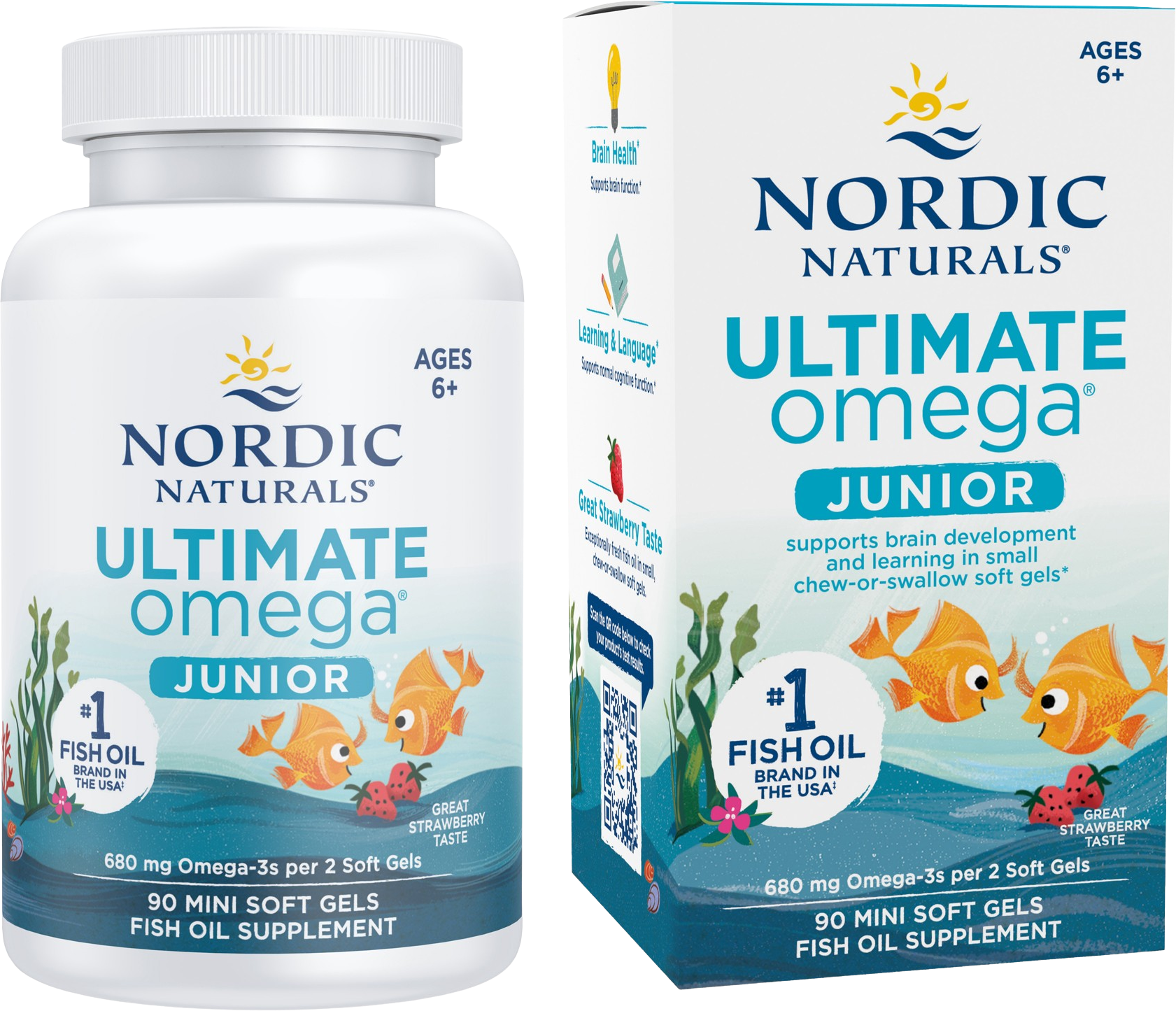 Ultimate Omega® Junior осигурява 680 mg омега-3 мастни киселини на порция в лесни за консумация мини софтгели за поглъщане или дъвчене.