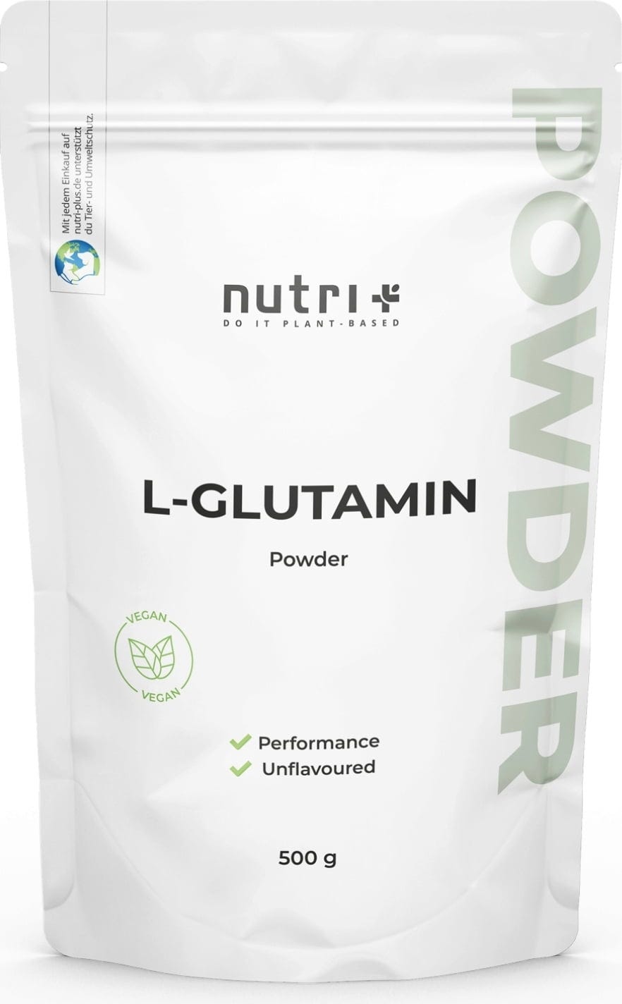 Л-глутаминът от nutri+ впечатлява с ултрафиното си качество, произведен чрез ферментация от царевица - изцяло на растителна основа. Той е 100% веган, без глутен, без соя и без ГМО. Освен това nutri + не използва оцветители, ароматизатори и антислепващи вещества.