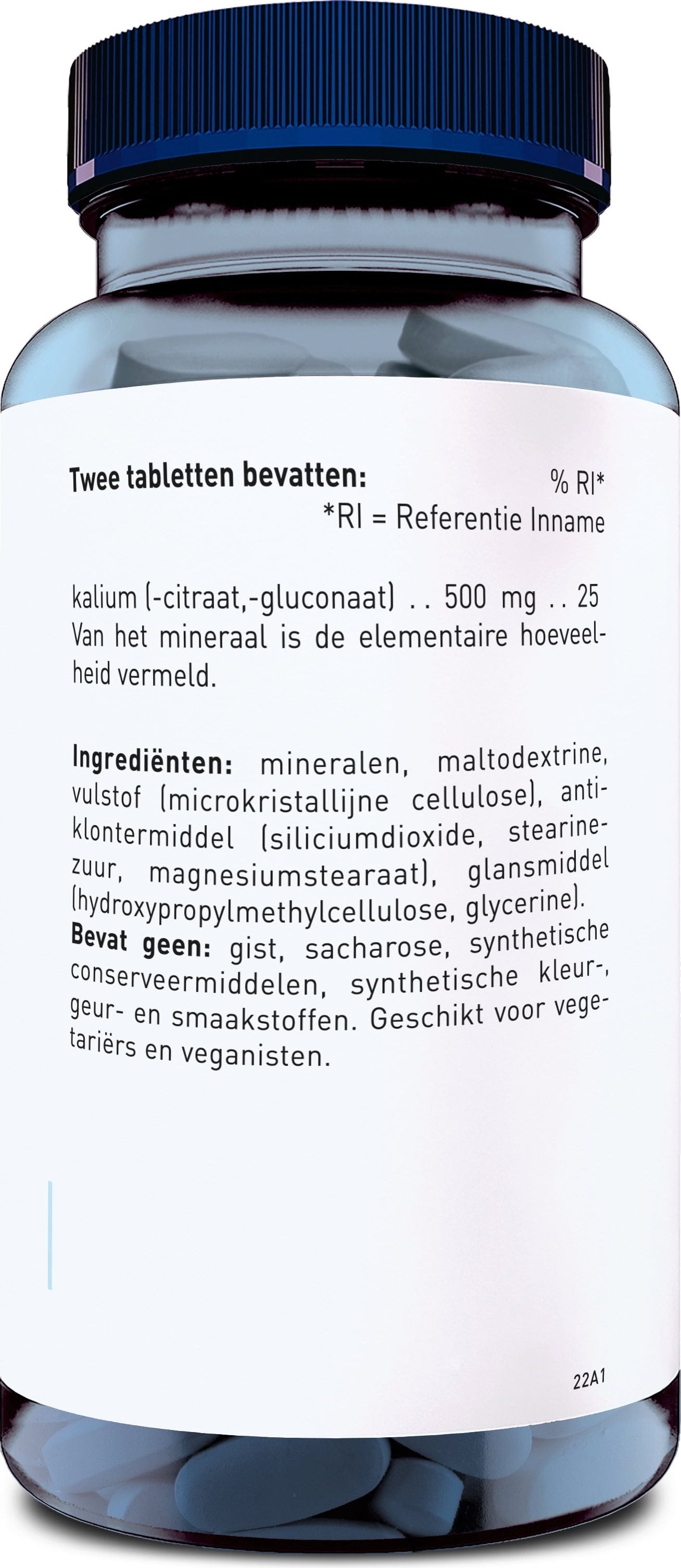 Калиев глюконат, калиев цитрат, малтодекстрин, агент за зареждане (микрокристална целулоза), средства против слепване (силициев диоксид, Хранителни мастни киселини, магнезиеви соли на мастни киселини), покриващ агент (Hydroxypropylmethylcellulose), Овлажнители (Glycerin)