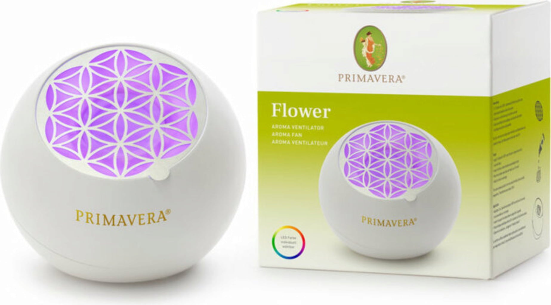 Насладете се на приятните аромати с този цветен арома вентилатор. Благодарение на студеното изпарение, можете лесно да се насладите на любимите си аромати за нула време. Интензивността може да се регулира в три нива и позволява непрекъснат обхват до 50 m². Независимо дали става дума за всекидневна, офис или чакалня, този елегантен аксесоар е идеален за декорация благодарение на променливото си LED осветление. В някои култури геометричната форма на цветята е синоним на радост и символизира сила и хармония.