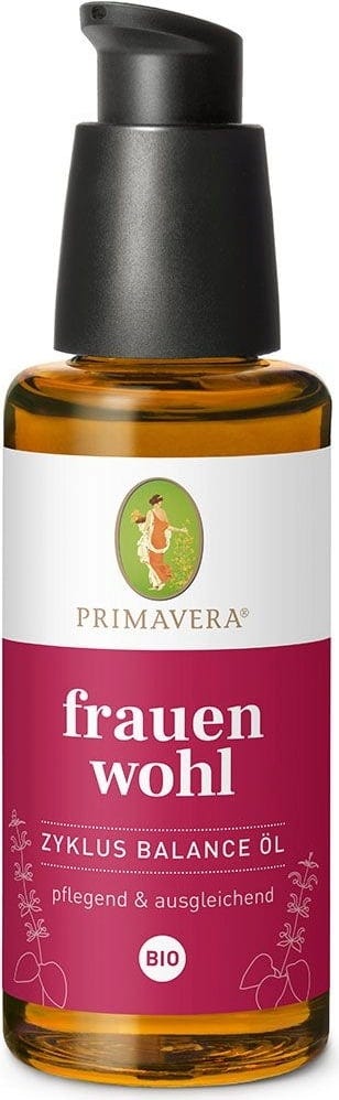 Маслото frauenwohl Zyklus Balance има билков и леко сладко-топъл аромат, който те съпровожда по време на менструалния цикъл. Нежният масаж с тази маслена композиция е приятен и подхранва кожата. Ароматерапевтичната смес от подбрани етерични масла от био салвия скларея, био витекс, био иланг-иланг и розова здравец е допълнена с масла от семена на нар и вечерна иглика, които правят кожата копринено мека.
