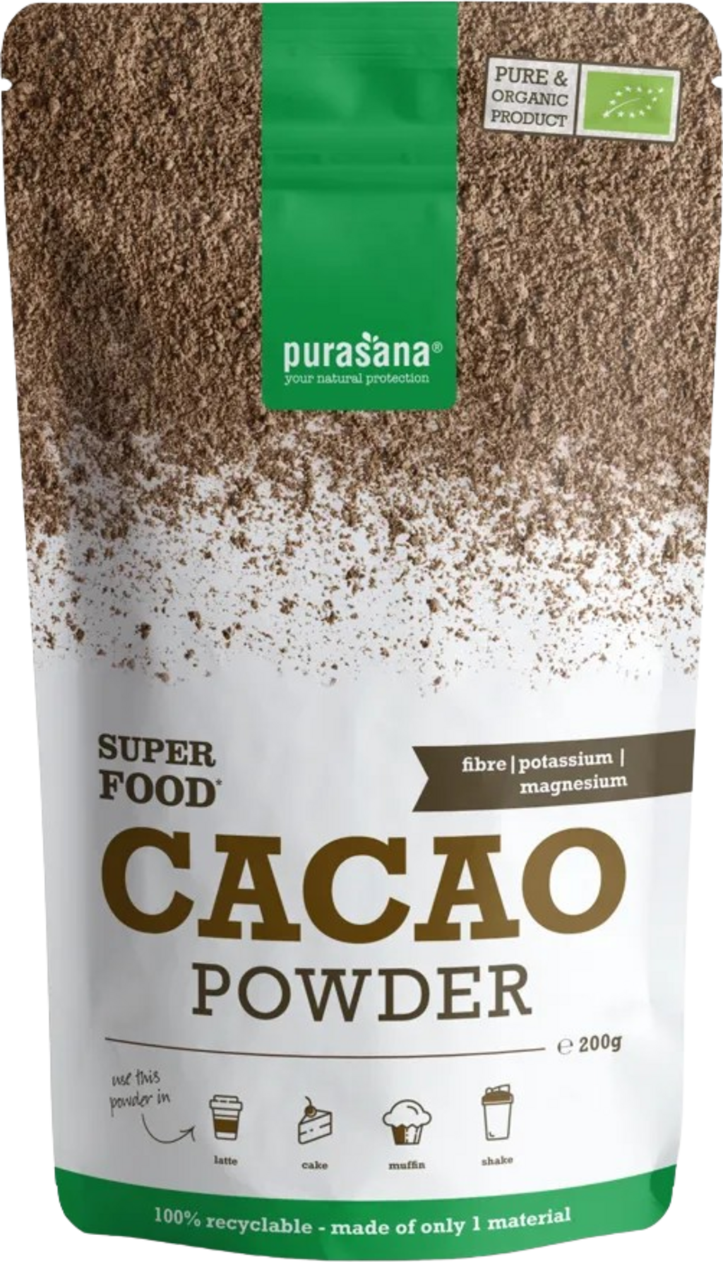 Какаот она прах на Purasana се добива без загряване от семената на какаовото дърво "Theobroma cacao". Едно малко дърво, което расте в тропическите климатчини зони. Какаото съдържа много специални хранителни вещества и фитохимикали.