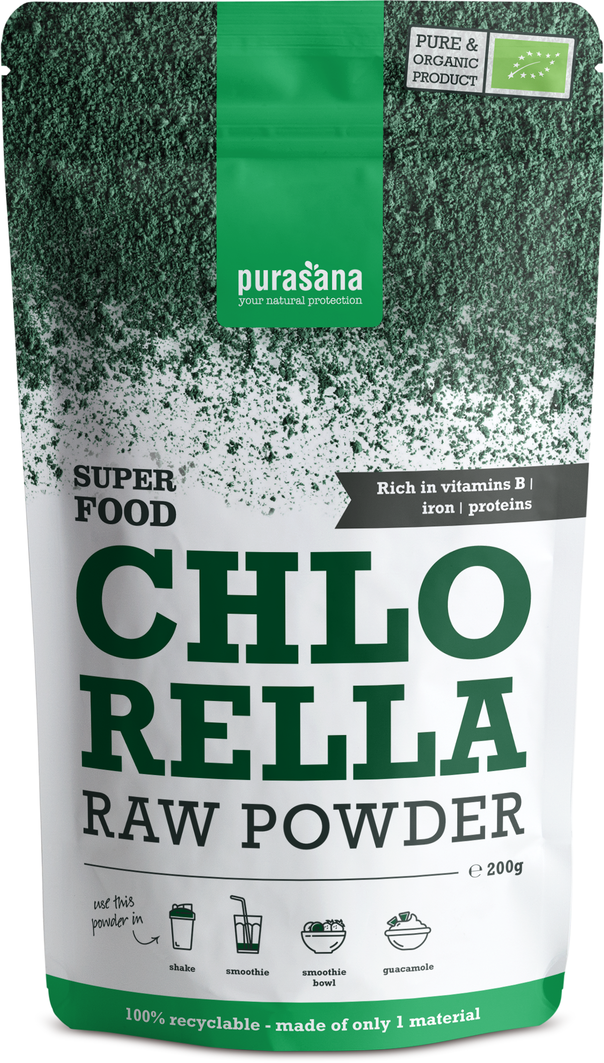 Purasana Хлорела на прах BIO, 200 г