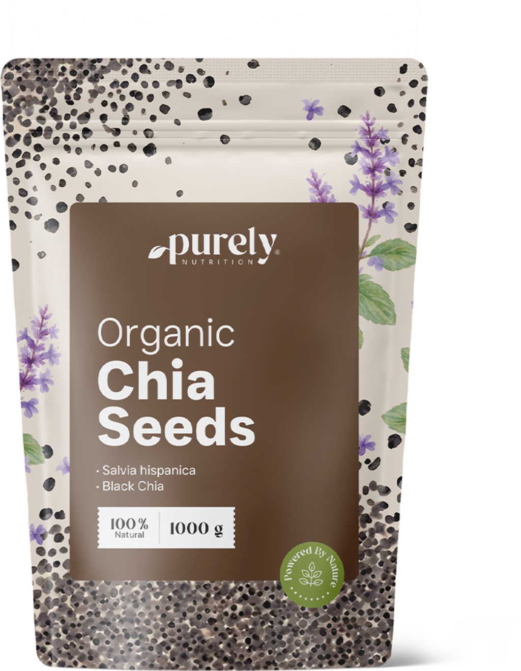 Органичните семена от чиа от Purely Nutrition са естествен източник на протеини и фибри, което ги прави питателно допълнение към вашата диета. Семената от чиа също така отлично свързват течности, което ги прави идеални за сгъстяване на храна. Въпреки това те са изключително универсални - например, те са идеалната добавка към мюсли, смутита, пасти, супи, сосове и др.