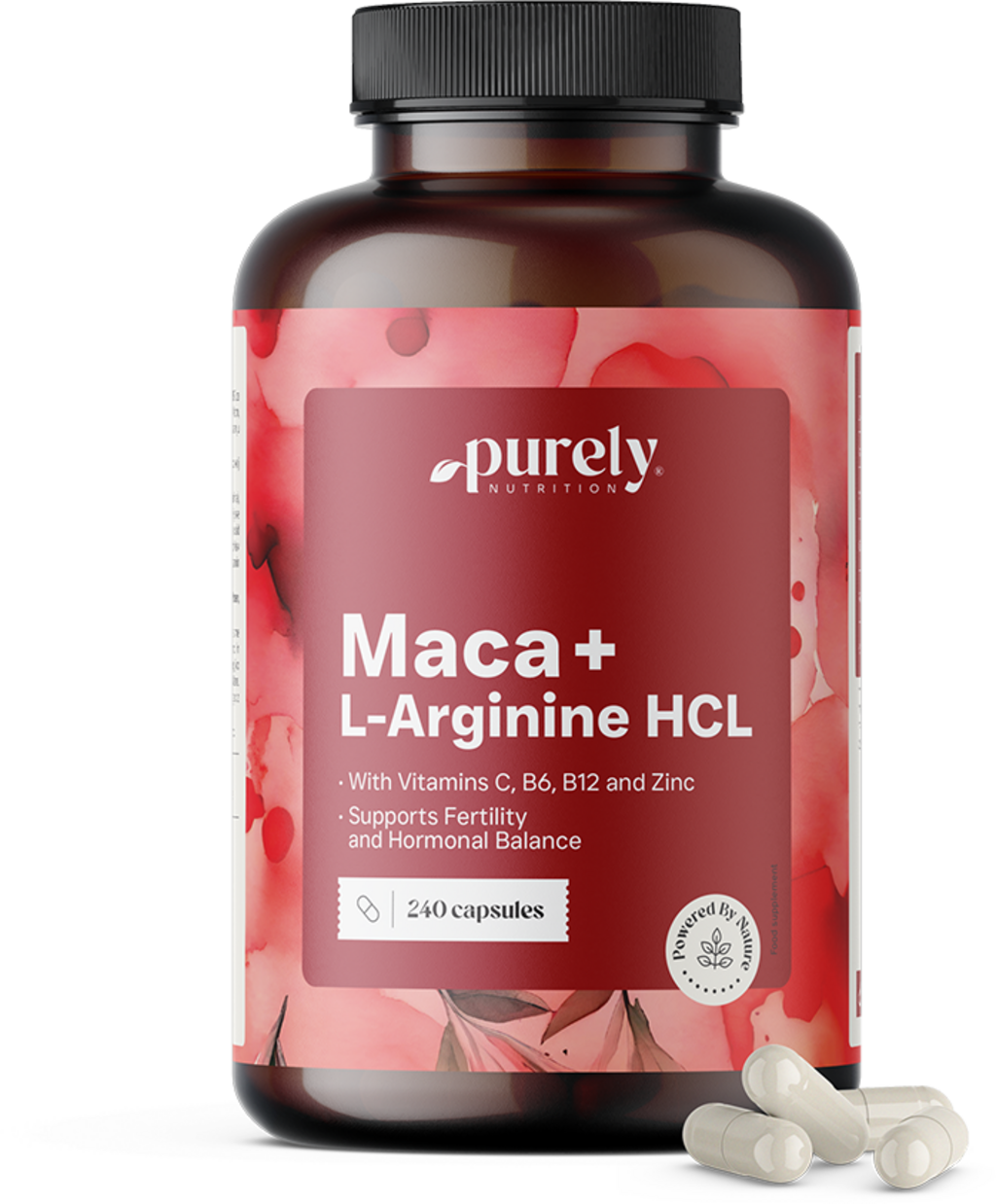 Капсулите Maca + L-Arginine HCL от Purely Nutrition са подходящи както за мъже, така и за жени. В допълнение към висококачествения екстракт от мака в съотношение 4:1 и аминокиселината L-аргинин, капсулите съдържат също цинк и витамини С, В6 и В12.