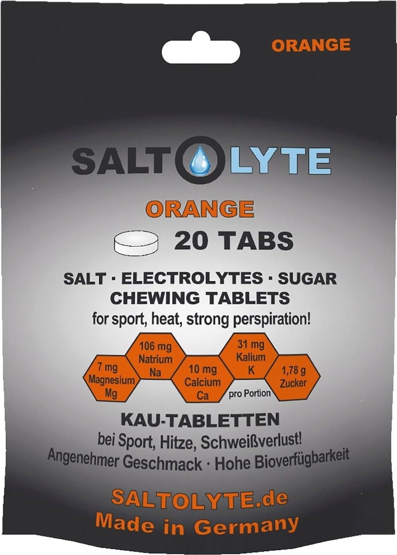 Дъвчащите таблетки SALTOLYTE със сол и електролит са удобен начин за прием на важни минерали и сол по време на физическо натоварване. Таблетките са вегетариански, не съдържат глутен, лактоза, изкуствени оцветители и продукти от генно инженерство. Компактната им форма ги прави идеални за употреба в движение – независимо дали по време на тренировка, състезание или при високи температури.