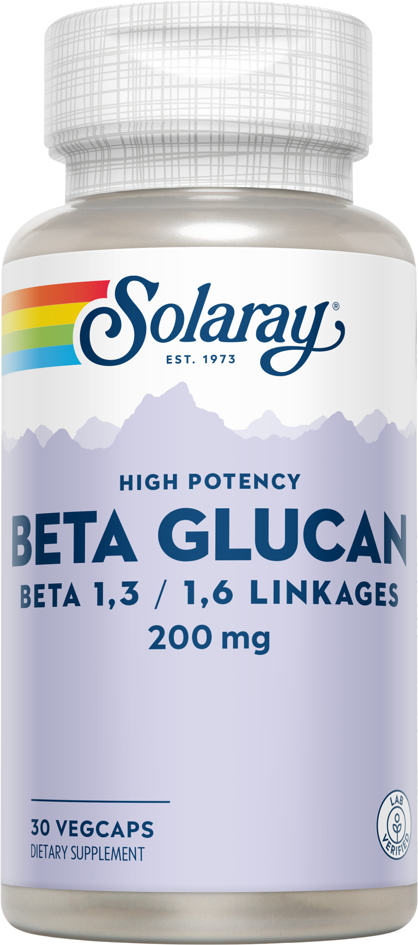Бета глюканът е неразтворим полизахарид и е вид диетични фибри. Веганските капсули Beta Glucan на Solaray съдържат 200 mg 1.3/1.6 бета глюкан от клетъчните стени на хлебната мая. Капсулите са без глутен и без ГМО.
