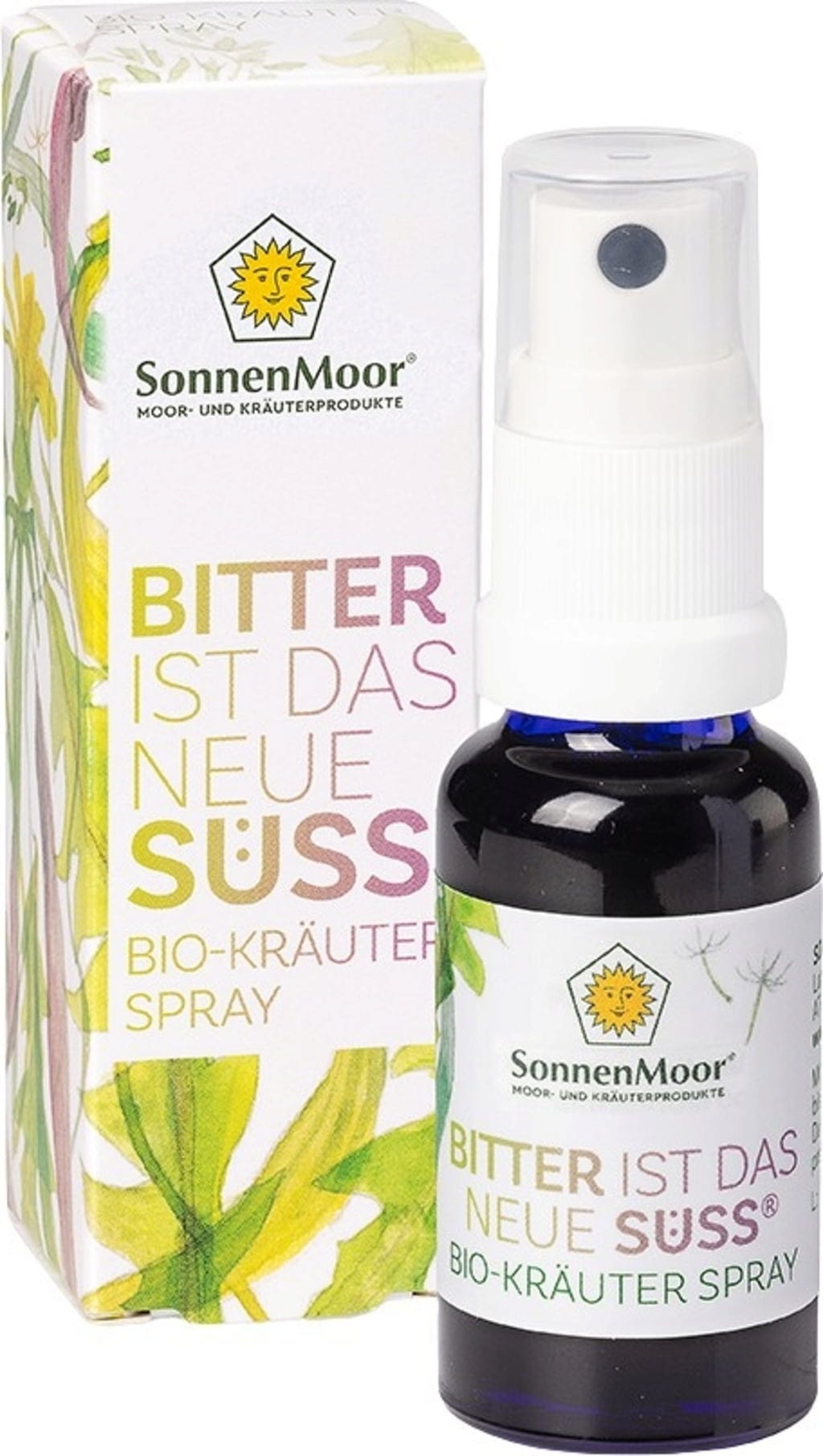 Билковият спрей „Bitter ist das neue Süß“ от SonnenMoor е био сертифициран натурален продукт, създаден специално за лесна употреба в ежедневието. Формулата се основава на воден екстракт от десет различни растения като корен от тинтява, цикория, червен кантарион и артишок. Благодарение на прецизното съчетание на тези горчиви билки, спреят предлага естествен начин менюто да бъде допълнено с ценни растителни вещества по всяко време.