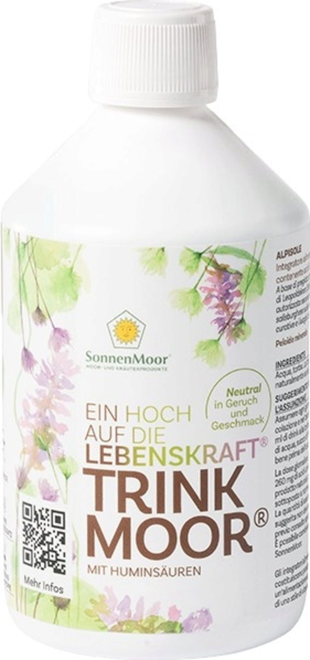 Trinkmoor от SonnenMoor се основава на висококачествен слой от торфището Leopoldskron край Залцбург. Това е продукт без мирис и вкус, формиран в продължение на хилядолетия от разнообразни билки. В сухото вещество този чист натурален продукт съдържа 29 % хуминови киселини.