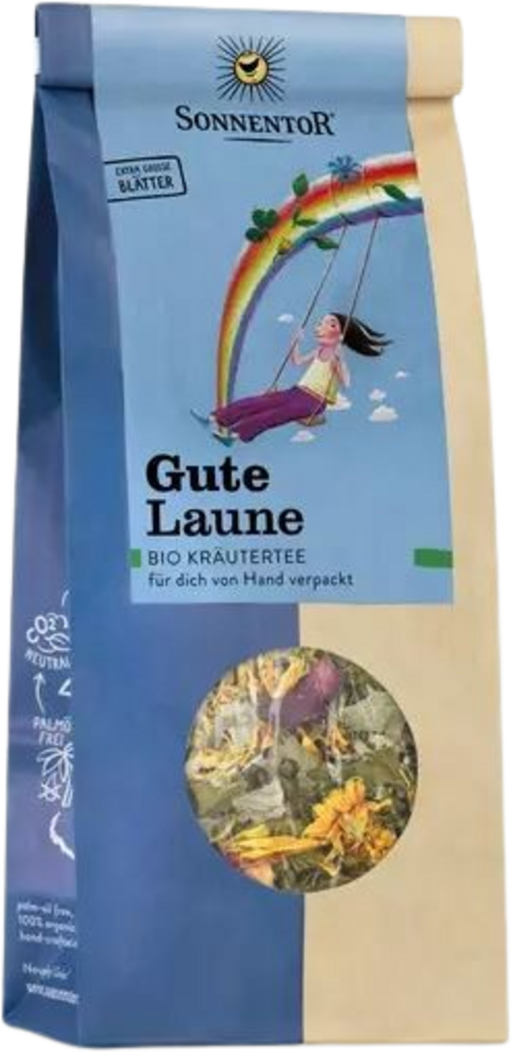 Чаената смес „Добро настроение“ е една от най-старите и със сигурност най-популярната билкова смес в асортимента на Sonnentor. Смесът е много харесван и от деца, което вероятно се дължи на нежния, мек вкус.