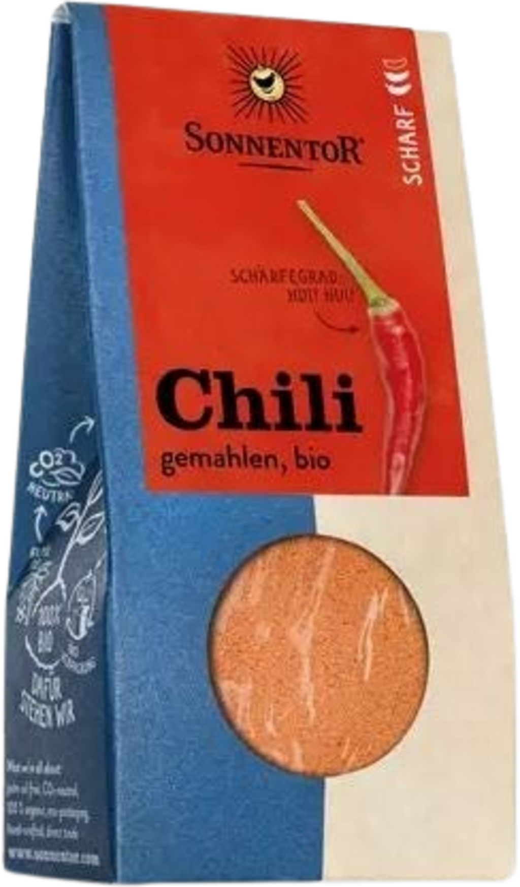Лютината прави разликата и дава на много ястия истинския „пеперлив“ завършек. Стойността по Сковил на мляното чили е на ниво 6 от максимално 10 степени на лютивина. Мляното чили на Sonnentor има наситен оранжево-червен цвят и огнена лютивина. Освен това се отличава с плодов аромат и леко сладка нотка.
