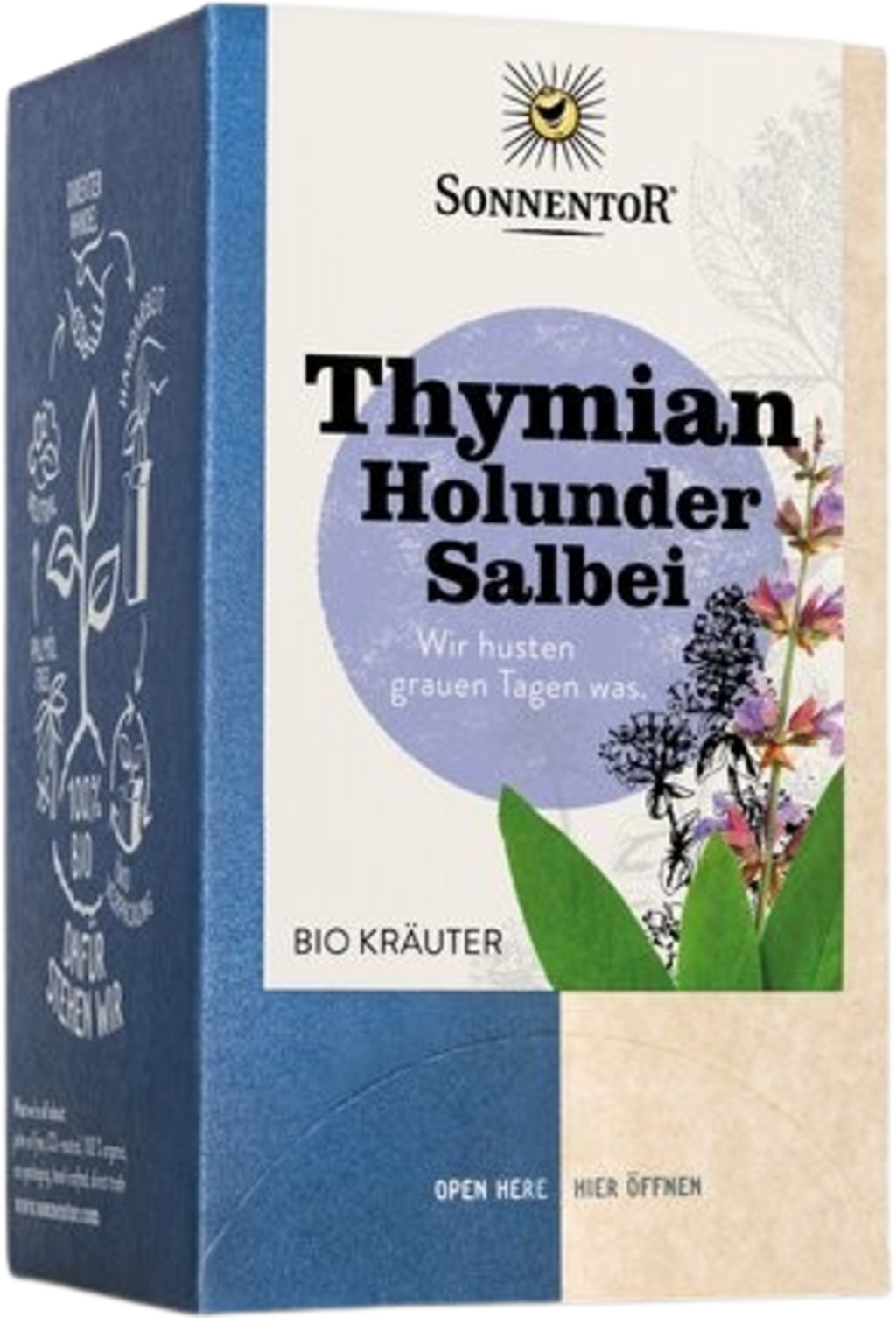 Трио, перфектно за студеното и влажно време. Мащерка, бъз и салвия обединяват комбинация от етерични, билкови и флорални вкусови компоненти. За тези три съставки от векове се говори, че са идеалната зимна смес и че не бива да липсват в нито един чаен шкаф през студените месеци. Оригинална билкова чаена смес от Sonnentor.