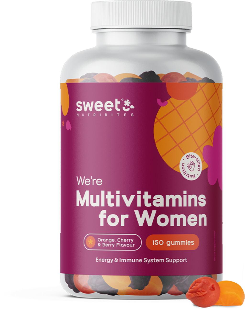 Тези мултивитаминни желирани бонбони от Sweet Nutribites съдържат разнообразие от витамини, включително витамини A, B6, B12, C, D3 и E. Те са обогатени и с цинк, йод и калций, за да осигурят оптимална подкрепа за вашето тяло. Тъй като мъжкото и женското тяло се различават по много начини, тези желирани бонбони са специално разработени за жени. Три вкуса (портокал, череша и горски плодове) предлагат плодово вкусово изживяване.